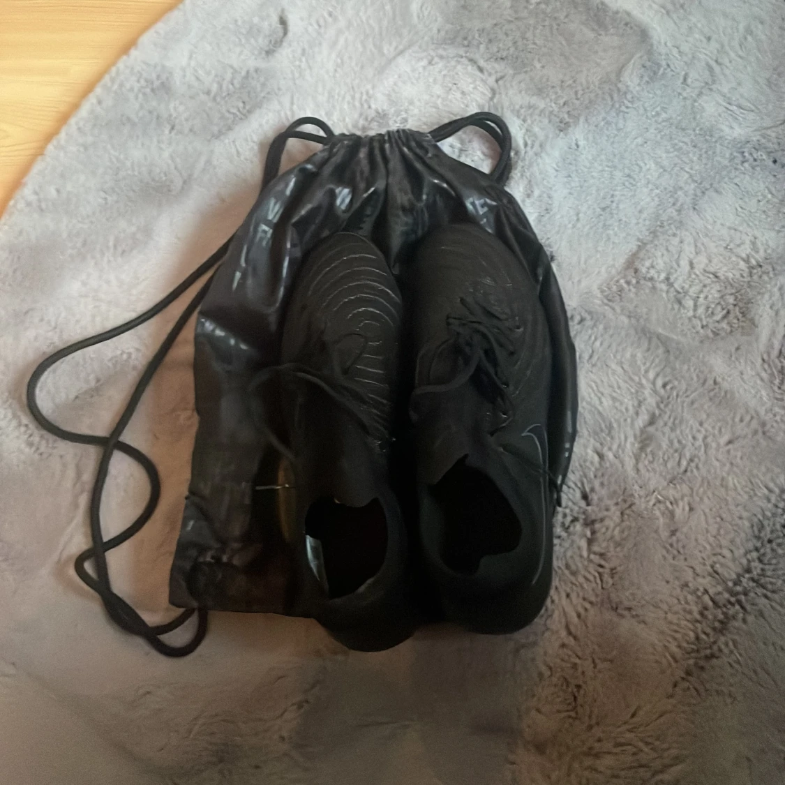 Säljer ett par svarta Nike phantom gx elite, helt oanvända fotbollsskor i storlek 45. Perfekt för dig som vill ta ditt spel till nästa nivå. Kontakta mig om ni har några funderingar! Tillkommer även en svart Nike påse