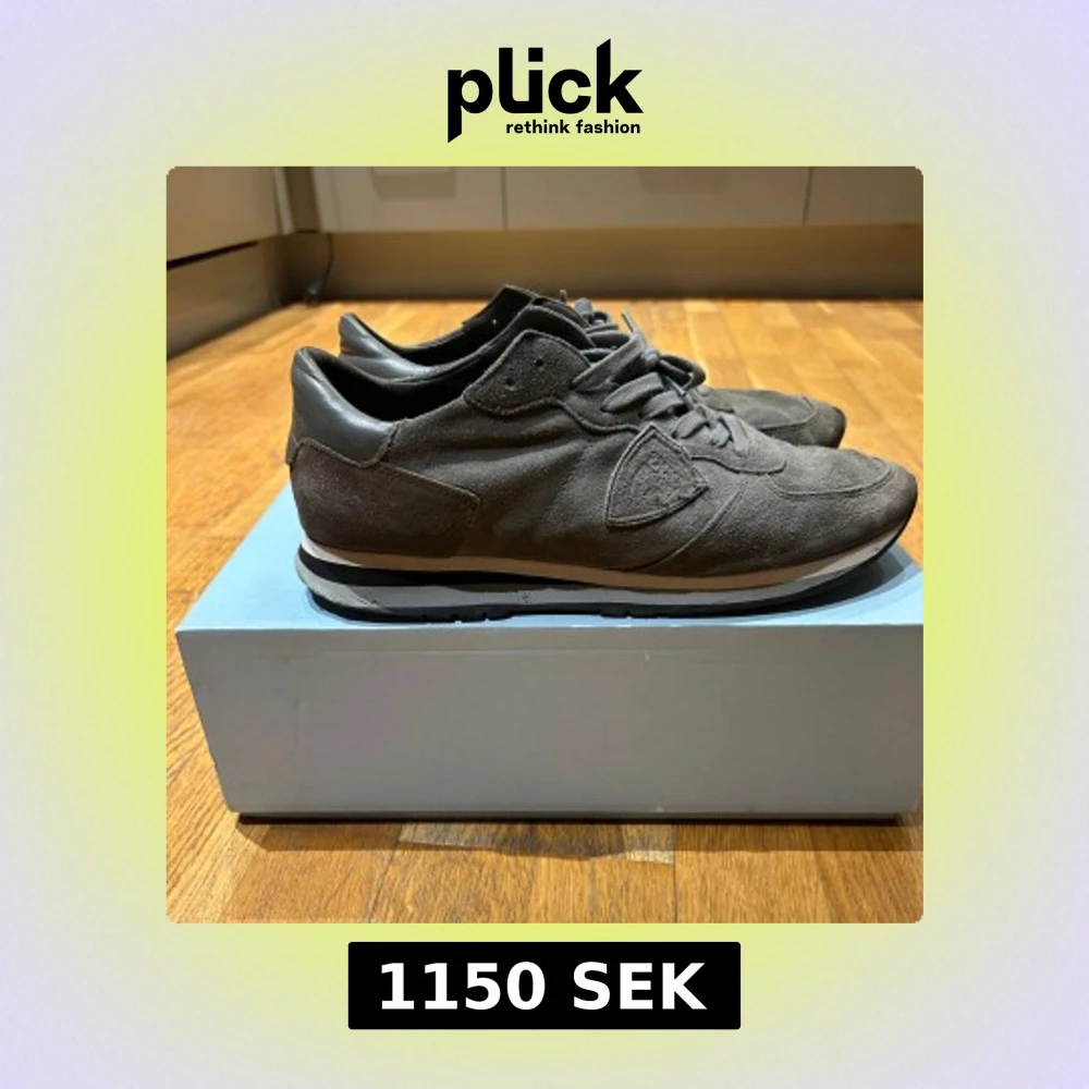Snygga grå sneakers från Philippe Model i mocka med snörning. Skorna har en stilren design med en bekväm sula och diskreta detaljer. Perfekta för en avslappnad stil. Inte det bästa skicket men ändå snygga. Priset kan såklart diskuteras. Fråga gärna för mer bilder. Allt ORG får man.