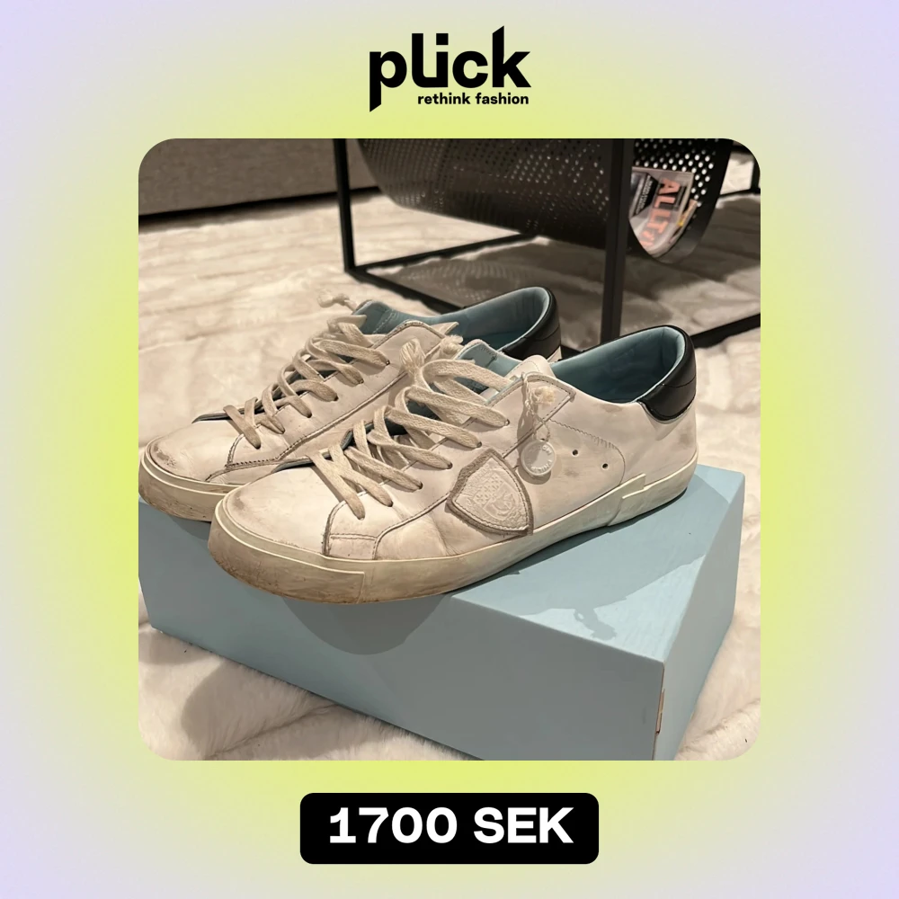 Säljer ett par vita sneakers från Philippe Model i bra skick. De har svarta detaljer på hälen och är gjorda i skinn. Perfekta för en casual look och passar till de flesta outfits. Skostorlek herr 42 passar även som 43. PRIS DISKUTERAS