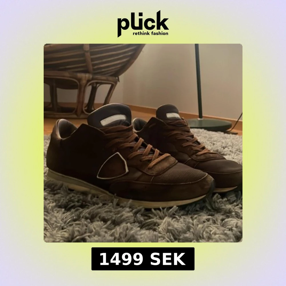 Snygga bruna sneakers från Philippe Model med klassisk låg siluett och vita detaljer på sidan. Skorna har snörning, platt sula och är tillverkade i en mix av mocka och skinn. Perfekta för dig som gillar en stilren men ändå sportig look.