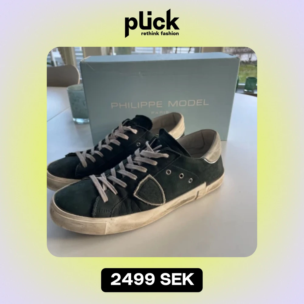 Säljer nu ett par Philippe model skor i storlek 42 som är i perfekt skick. Lite smutsiga men går lätt att fixa till nyskick. Kvitto och box följer med vid köp! Lägsta pris 2200!!!!