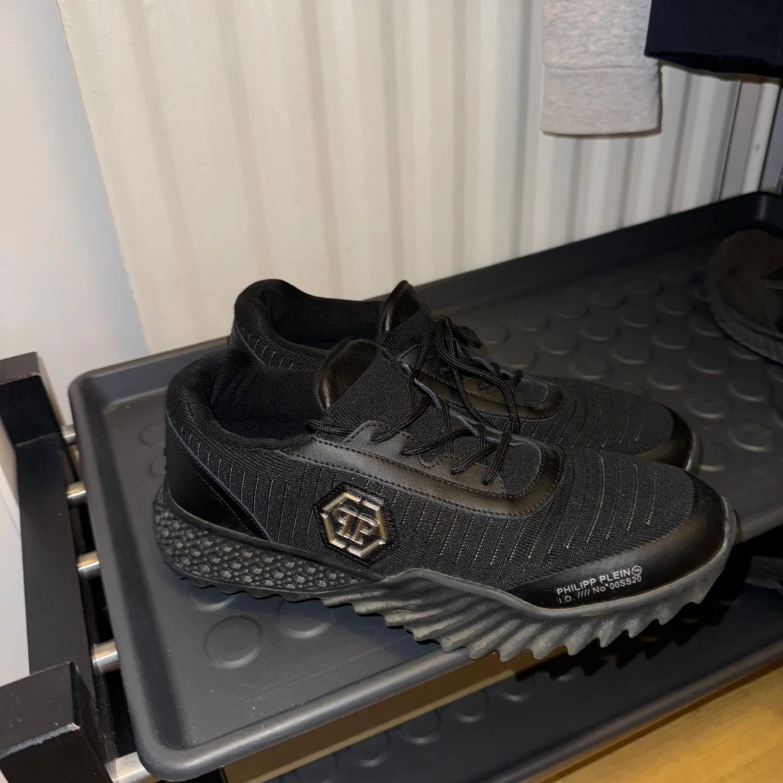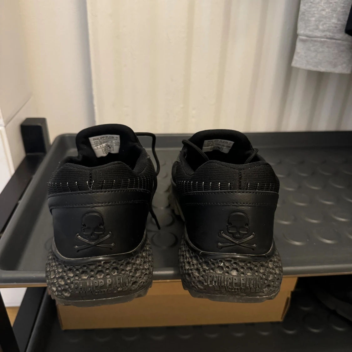 Svarta sneakers från Philipp Plein med coola detaljer som silverfärgad logotyp på sidan och dödskalle på hälen. Skorna har snörning, mönstrad sula och är tillverkade i en mix av textil och skinn. Snygga linjer och modern design gör dem till ett statement.