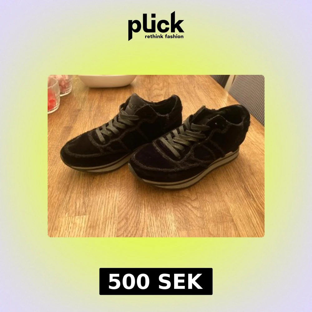Snygga svarta sneakers från Philippe Model med coola detaljer i mocka och skinn. Skorna har rund tå, platt sula med grå och vit rand, samt snörning framtill. Perfekt för dig som gillar en stilren och lyxig look med lite extra edge.