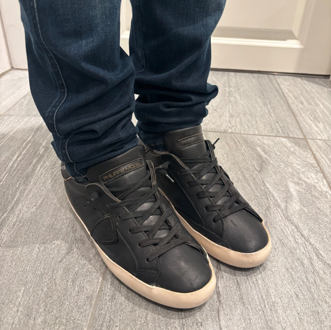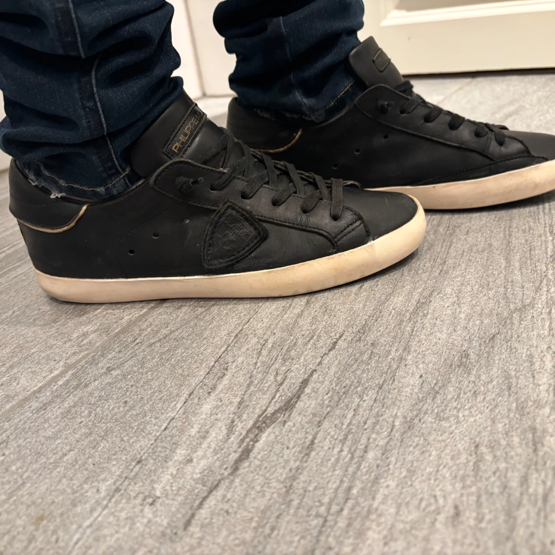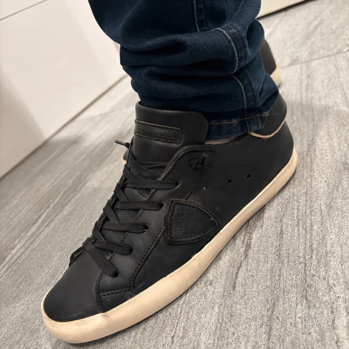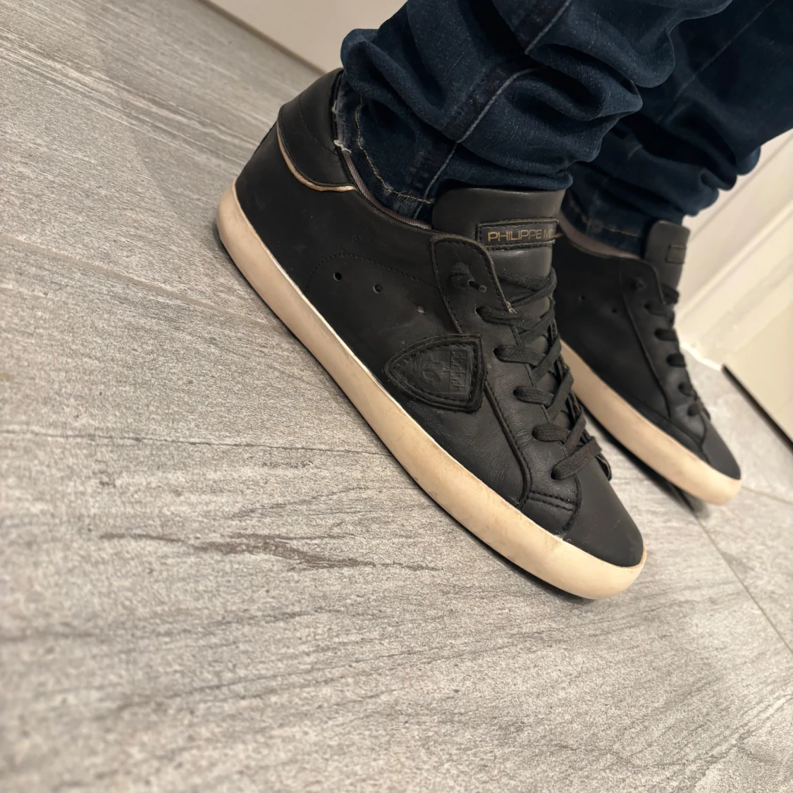 Snygga svarta sneakers från Philippe Model med klassisk design och vita sulor. Skorna har snörning och en diskret logga på sidan. Perfekta för en stilren look. Obs ingen box