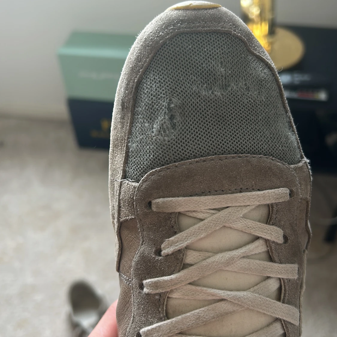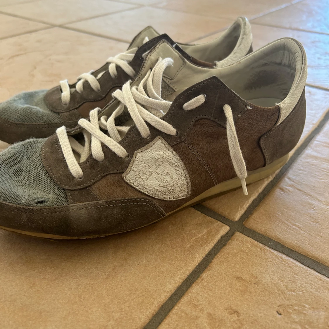 Jätte sköna Phillips model som passar runt 41-42 och e riktigt snygga till sommaren, kan sänka pris vid snabb affär. de är lite tradiga vid framsidan av skorna men det är inget hål utan bara tyget. Box kommer med