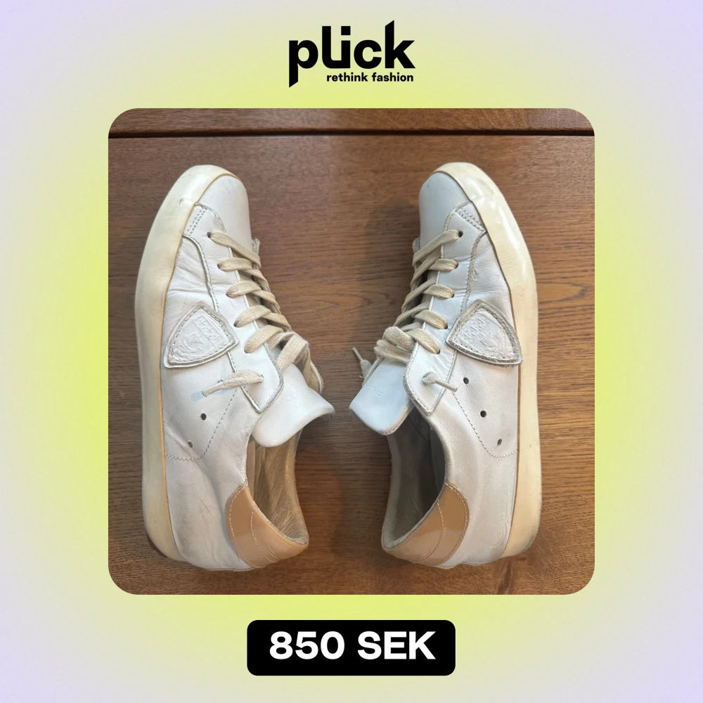 Säljer ett par vita sneakers från Philippe Model i bra skick. Skorna har en klassisk design med beige detaljer och snörning. Perfekta för vardagsbruk och ger en stilren look. Sulorna är i gott skick med tydlig logga under. Passar 40/41 i storleken