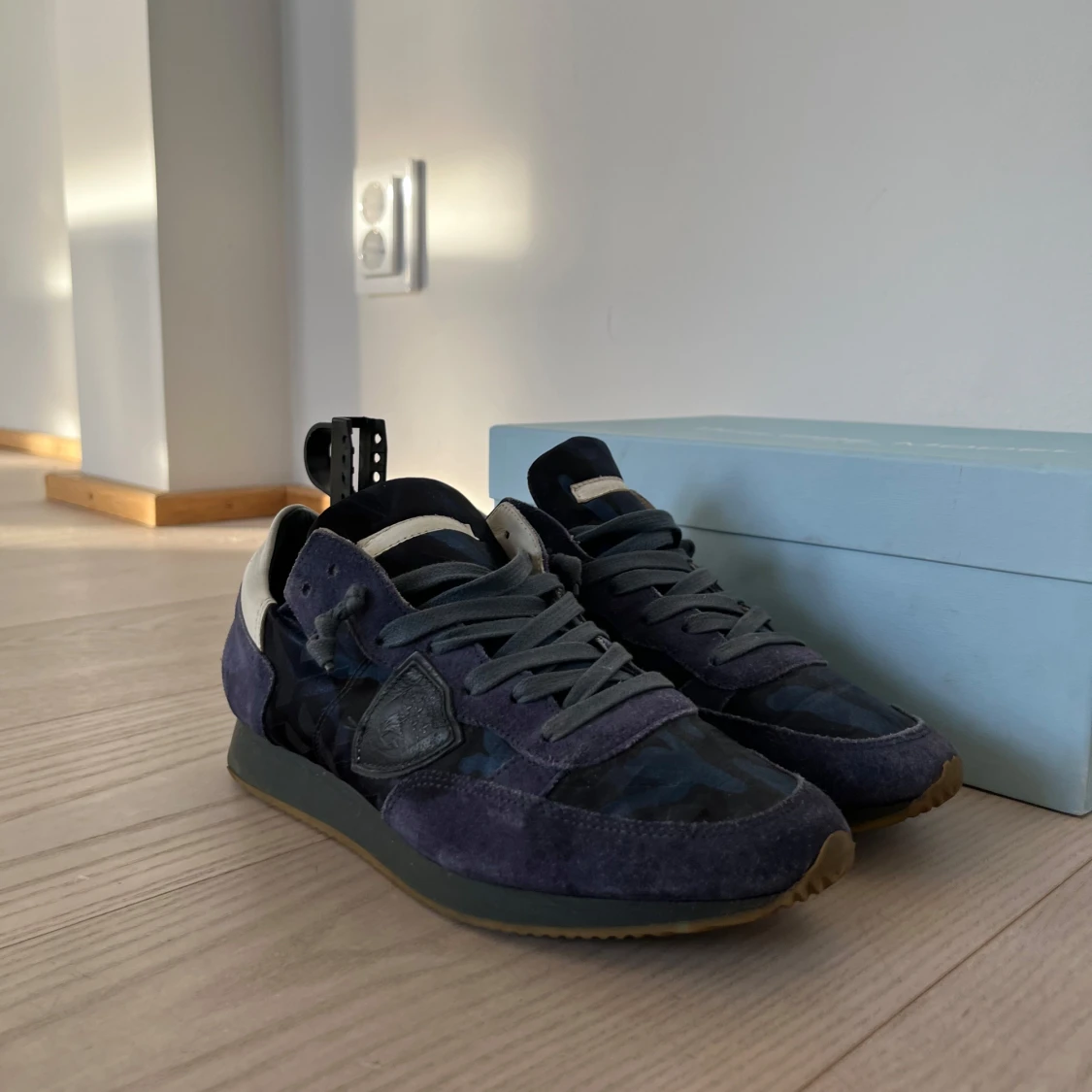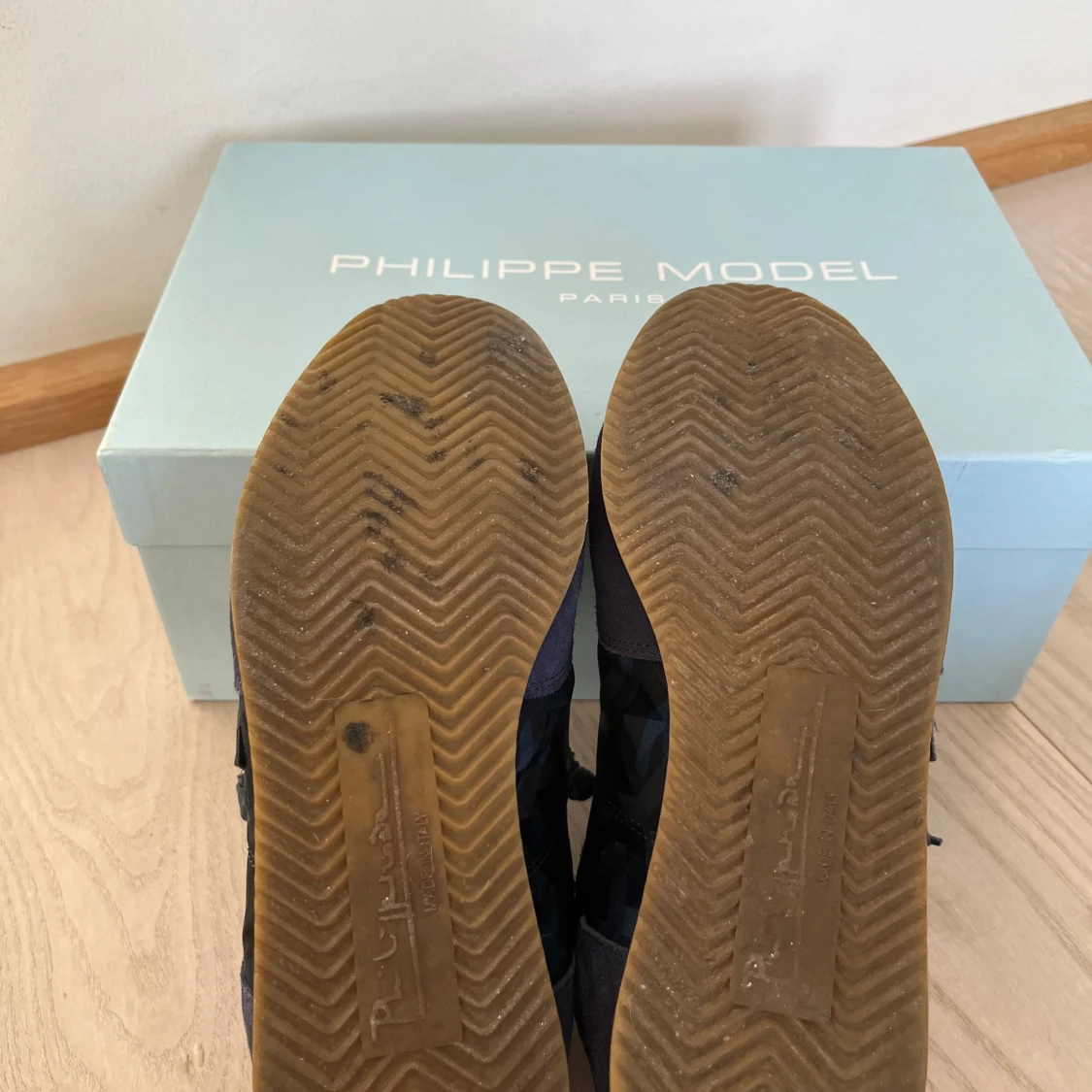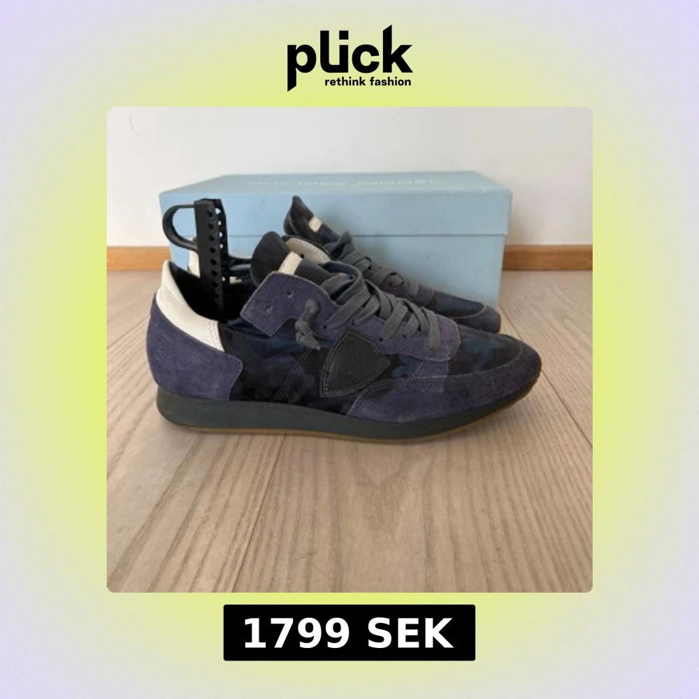 Snygga Philippe Model sneakers i blå mocka med kamouflagemönster| Storleken är 40 men dom sitter som 41| Skick 9/10 väldigt bra skick inga defekter| Skriv om ni är intresserade inget og medföljer vid köp|