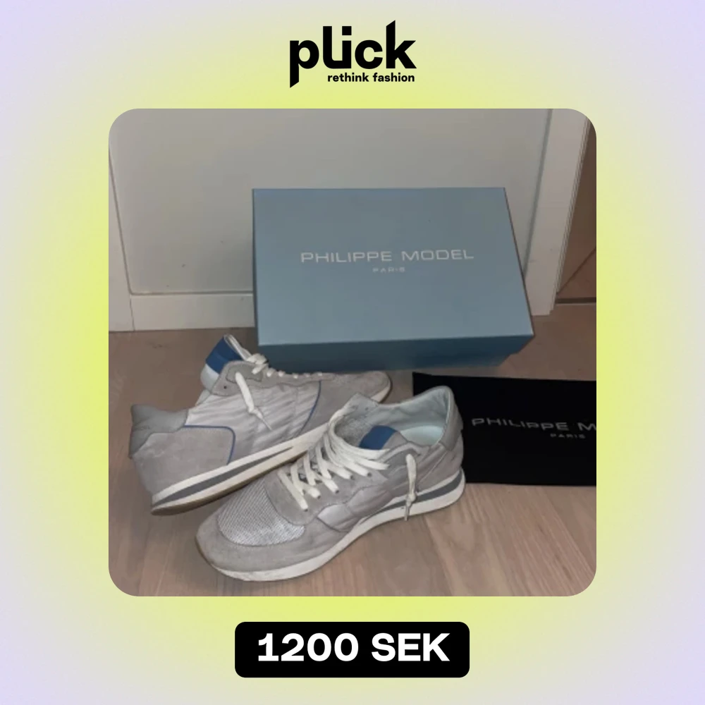 Säljer dessa gråa snygga och sköna phillipe model trainers i storlek 41, ny pris 3900kr skick 9/10 skriv om ni har några funderingar.Dustbag medföljer såklart.