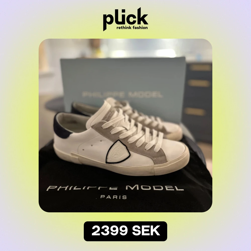 Säljer ett par snygga vita sneakers från Philippe Model i storlek 41. Skorna har en stilren design med gråa mockadetaljer och mörkblå häl. De är i mycket bra skick. Box och dustbag medföljer. Hör av vid frågor eller funderingar. Kan ta byten. Phillipe model är lite stora i storleken så de passar storlek 42 också.