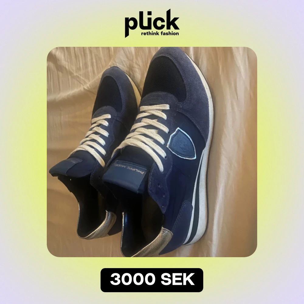 Säljer ett par snygga blå sneakers från Philippe Model i mycket bra skick. Skorna har en stilren design med vita snören och detaljer i mocka. Perfekta för både vardag och fest! 🕺