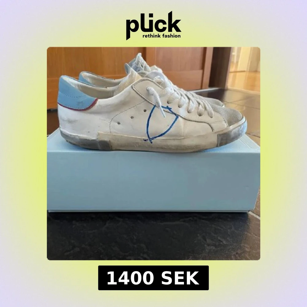 Säljer ett par feta phillipe modelle skor i storlek 41 men passar om man har 42 ock, finns en deefekt vilker är lite hälslitage på skorna, kontakta mig för mer frågor
