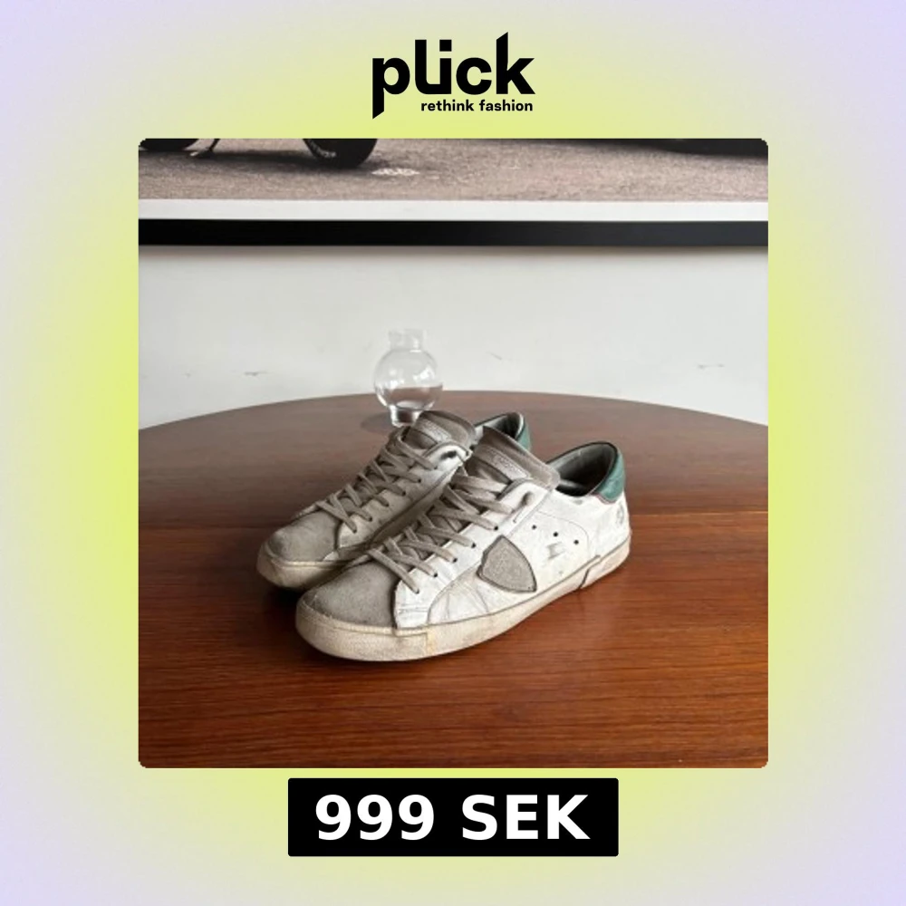 Snygga sneakers från Philippe Model i vitt och grått med gröna detaljer på hälen. Skorna har rund tå, snörning och platt sula. Materialet är en mix av skinn och mocka, vilket ger en cool och urban vibe. Perfekta för dig som gillar streetstyle och vill sticka ut.