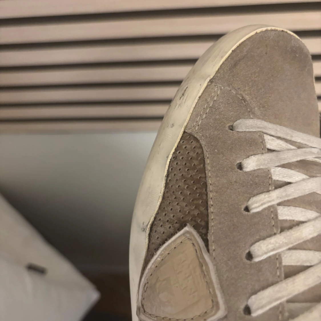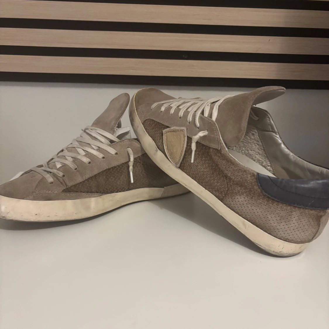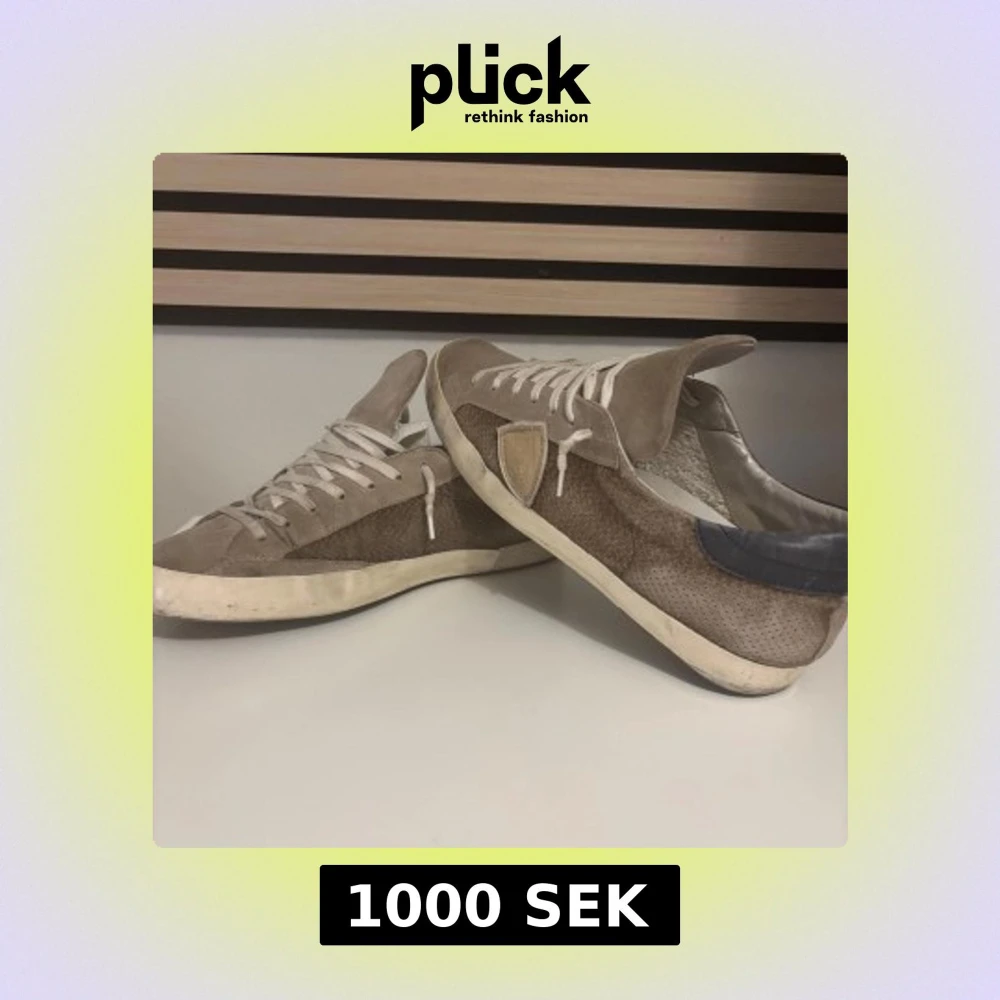 Tja! Säljer nu mina phillipe model skor pga inte kommer t användning, köpta för ca 1 år sen och är en rätt o sliten sko, om sulad i hälen, samt limmet har fastnat lite på sidan(sid4) som sagt sliten sko men snygg o en annorlunda färg( få exemplar), Gjorts en lagring där bak på sulan( finns på bild) nypris:4750kr, Box tillkommer