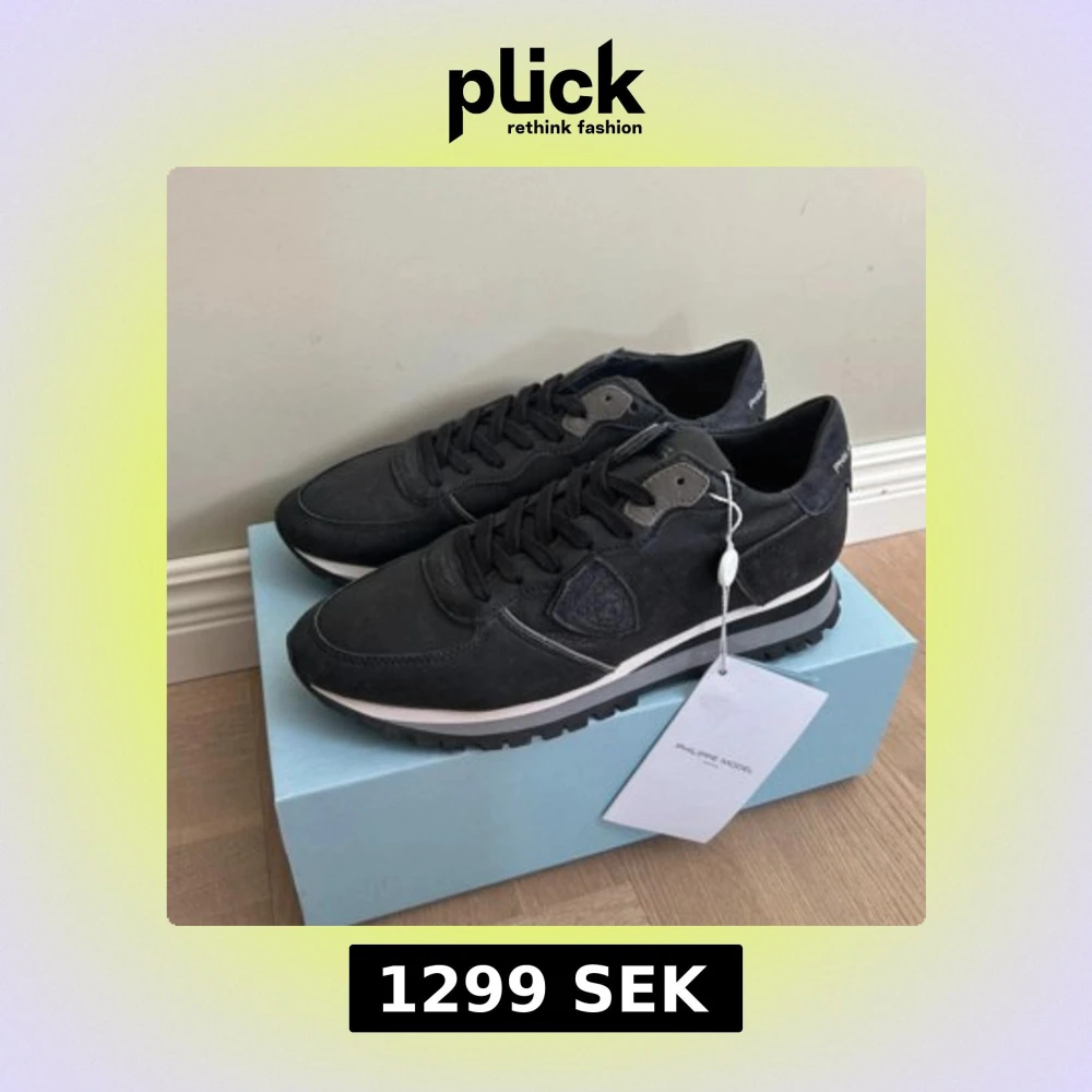 Snygga svarta sneakers från Philippe Model med klassisk design och rund tå. Skorna har snörning, detaljer i mocka och skinn samt en vit och svart platt sula med räfflad undersida. Perfekta för dig som gillar stilrena och sportiga skor.