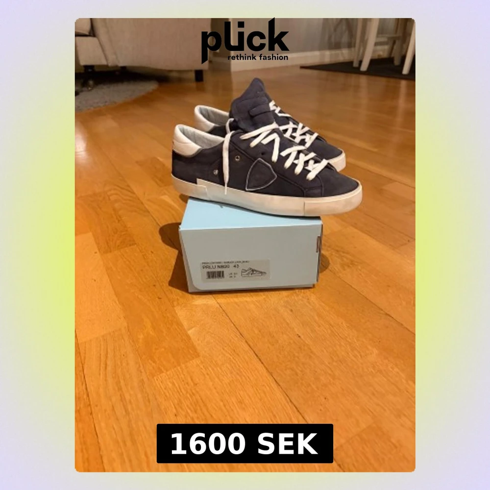 Snygga Philippe Model sneakers i mörkblå mocka med vita detaljer och snörning. Skorna har en rund tå, platt sula och vit häl med logotyp. Kommer med originalkartong och dustbag. Perfekt för dig som gillar stilrena och exklusiva sneakers.