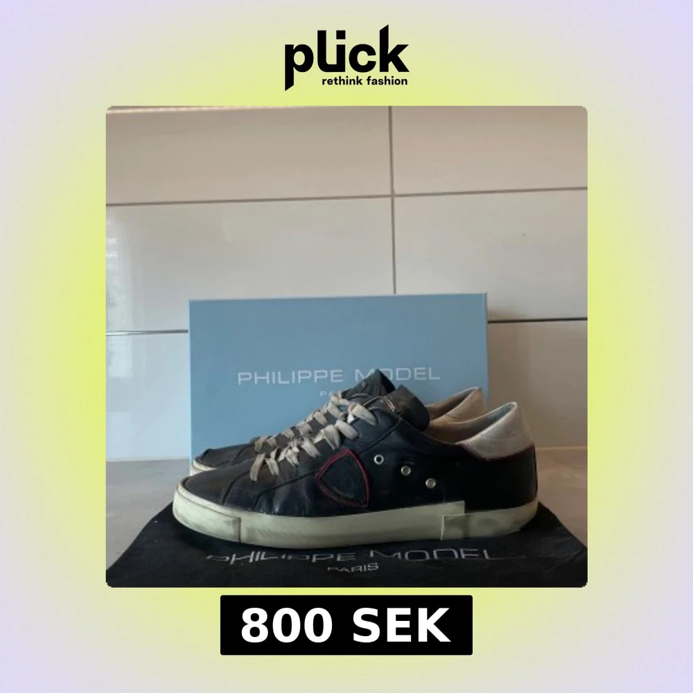 Säljer ett par svarta Philippe Model sneakers med vita snören och vit sula. Skorna har gråa och röda detaljer. Klassisk låg modell med rund tå och platt sula. Perfekta för dig som gillar stilrena skor☑️Finns såklart vissa defekter till exempel lite slitna skosnören men sen ska det inte vara ett problem. Storlek 43 men passar även 42