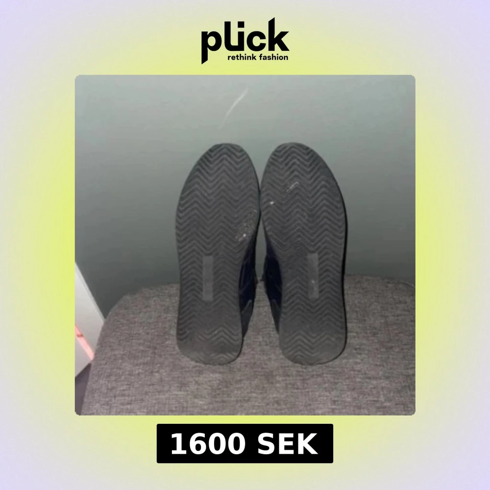 Säljer ett par svarta sneakers från Philippe Model med vita detaljer och snörning. Skorna har en klassisk sportig design med rund tå och platt sula. Materialmix av mocka och syntet, perfekt för dig som gillar stilrena och bekväma sneakers.