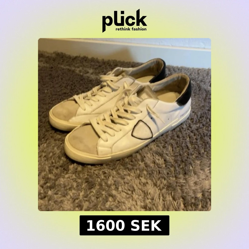 Snygga vita sneakers från Philippe Model med svart häl och klassisk snörning. Skorna har en rund tå, platt sula och är tillverkade i skinn. Diskret logga på sidan och neutrala färger gör dem lätta att matcha med olika outfits.(jag går inte under 1600kr köpta för 2500)