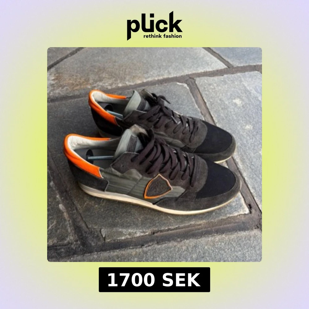 Snygga sneakers från Philippe Model i svart mocka och textil med gråa paneler och orange detaljer vid häl och logga. Skorna har snörning och en vit platt sula som ger en sportig vibe. Perfekta för dig som gillar streetstyle och unika färgkombinationer.