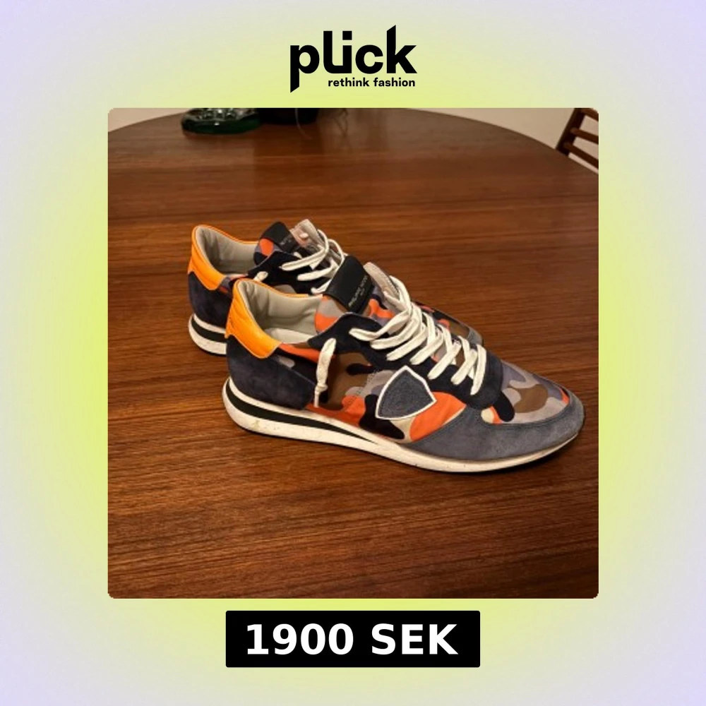 Snygga sneakers från Philippe Model med ett unikt camouflage-mönster i orange, blått och beige. Skorna är perfekt nu till vintern och sitter väldigt bekvämt, priset är inte hugget i sten så hör av er!