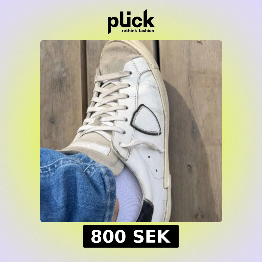 Snygga vita sneakers från Philippe Model med detaljer i grå mocka och svart skinn på hälen. Klassisk låg modell med snörning och rund tå. Skorna har en stilren design med märkets logga på sidan och bak. Perfekta för dig som gillar en clean och trendig look. Hör av dig vid minsta fundering, fraktar inom 48h
