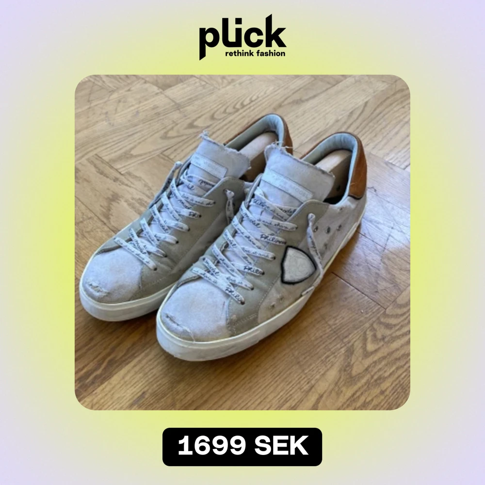 Tja! Säljer nu dessa Philippe Model skor. Skorna är i ett hyfsat skick men sulan är fortfarande väldigt fin. Perfekta till sommaren! Skicka ett dm om fler bilder önskas. Priset är inte hugget i sten! Slitningarna är del av designen!