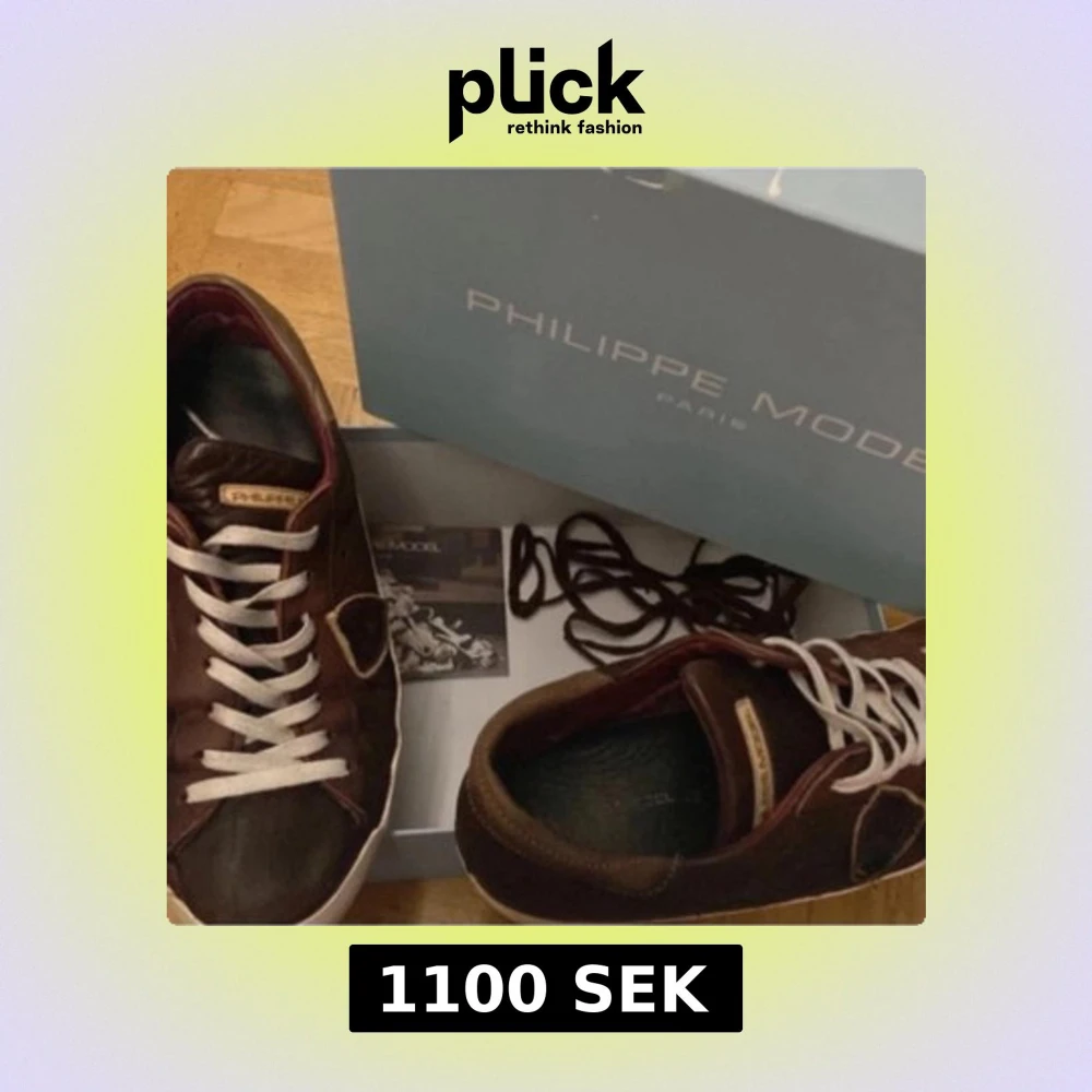 Hej! Jag säljer nu ett par riktigt stilrena Philippe model skor i färgen vinröd/brun med og saker. Alla og sakerna förutom fotot ingår ingår! Storlek 43