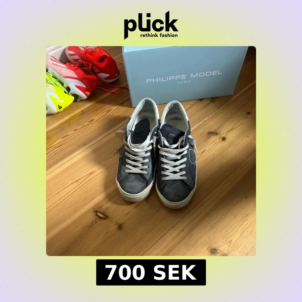 Säljer nu mina Philippe Model. Strl 41. Inga synliga defekter förutom att dem är använda rätt mycket så texten börjar försvinna bak. Sen även att den är lite smutsiga.