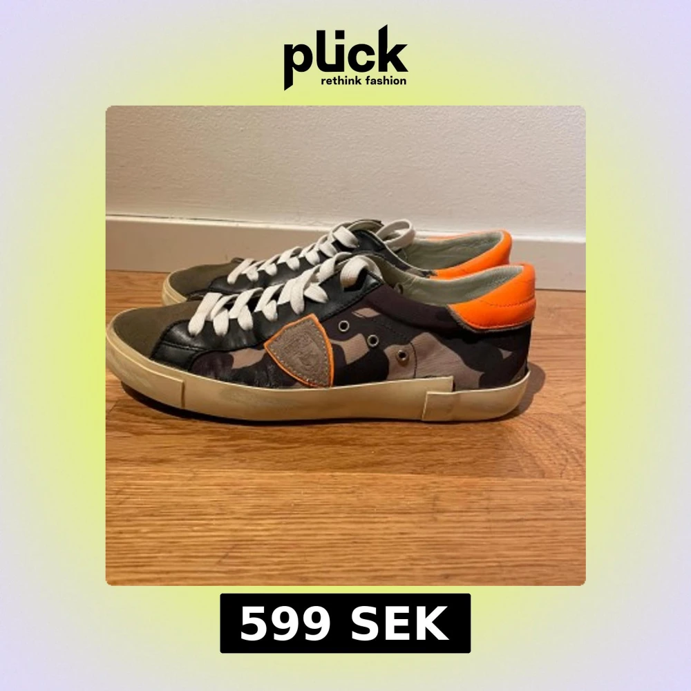 Snygga sneakers från Philippe Model med ett coolt camouflage-mönster och orange detaljer. Skorna har en rund tå och snörning framtill. Perfekta för dig som vill sticka ut med stil.