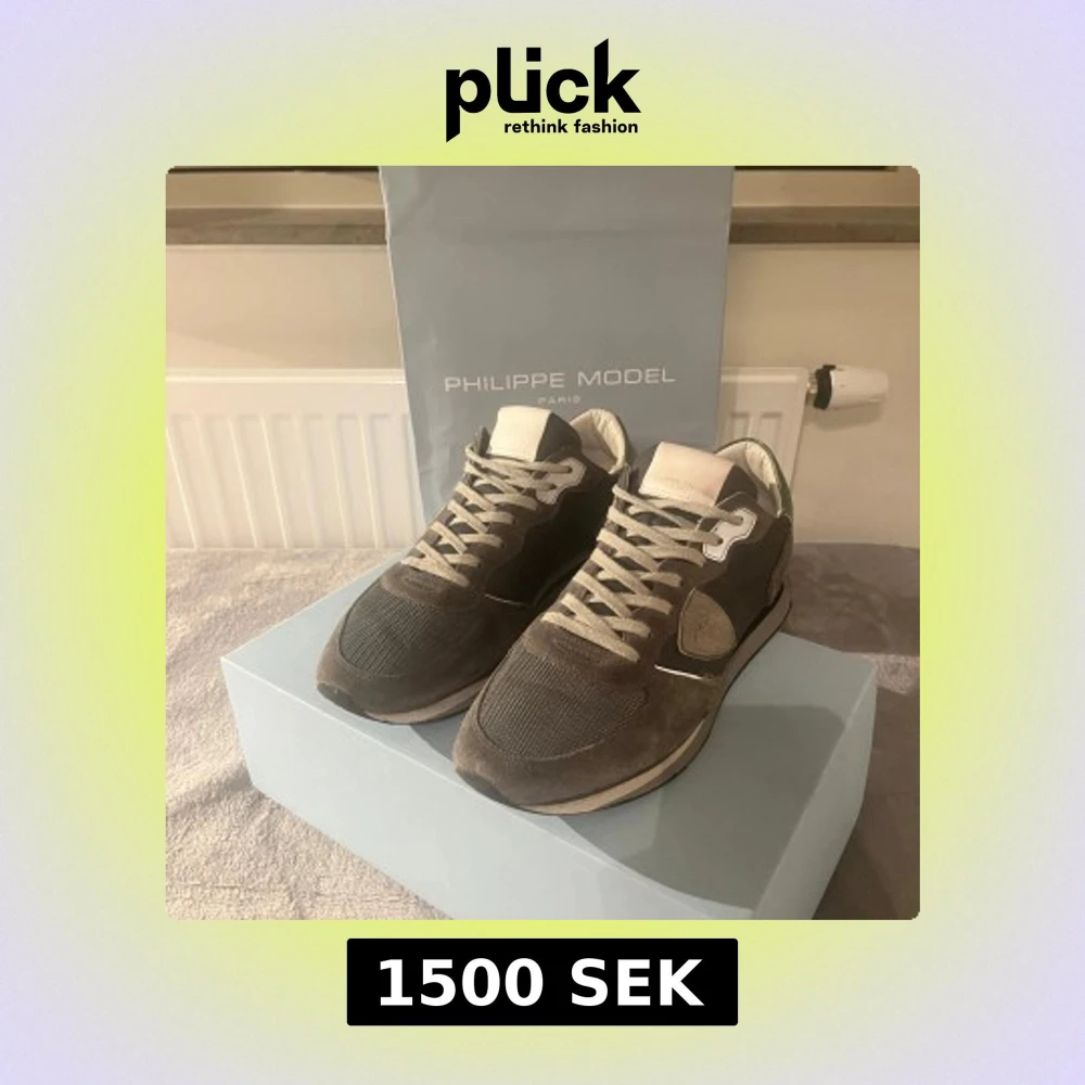 Snygga sneakers från Philippe Model i grå mocka och mesh med vita och gröna detaljer. Skorna har snörning, rund tå och platt sula. Perfekta för en stilren och avslappnad look.