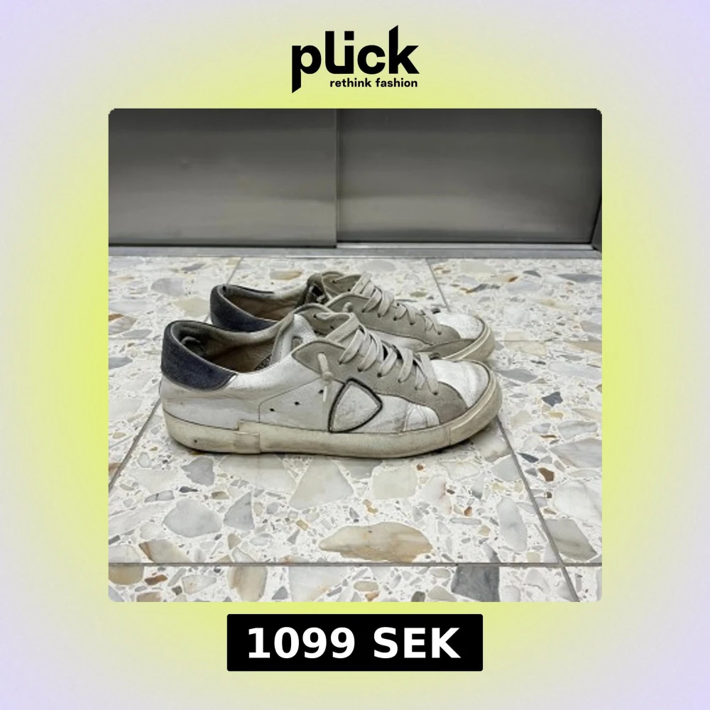 Snygga vita sneakers från Philippe Model. Lite smutsiga men går att göra rent. Nytt pris 3000kr mitt pris 1099. Om ni har några frågor eller vill diskutera priset så är det bara att fråga.