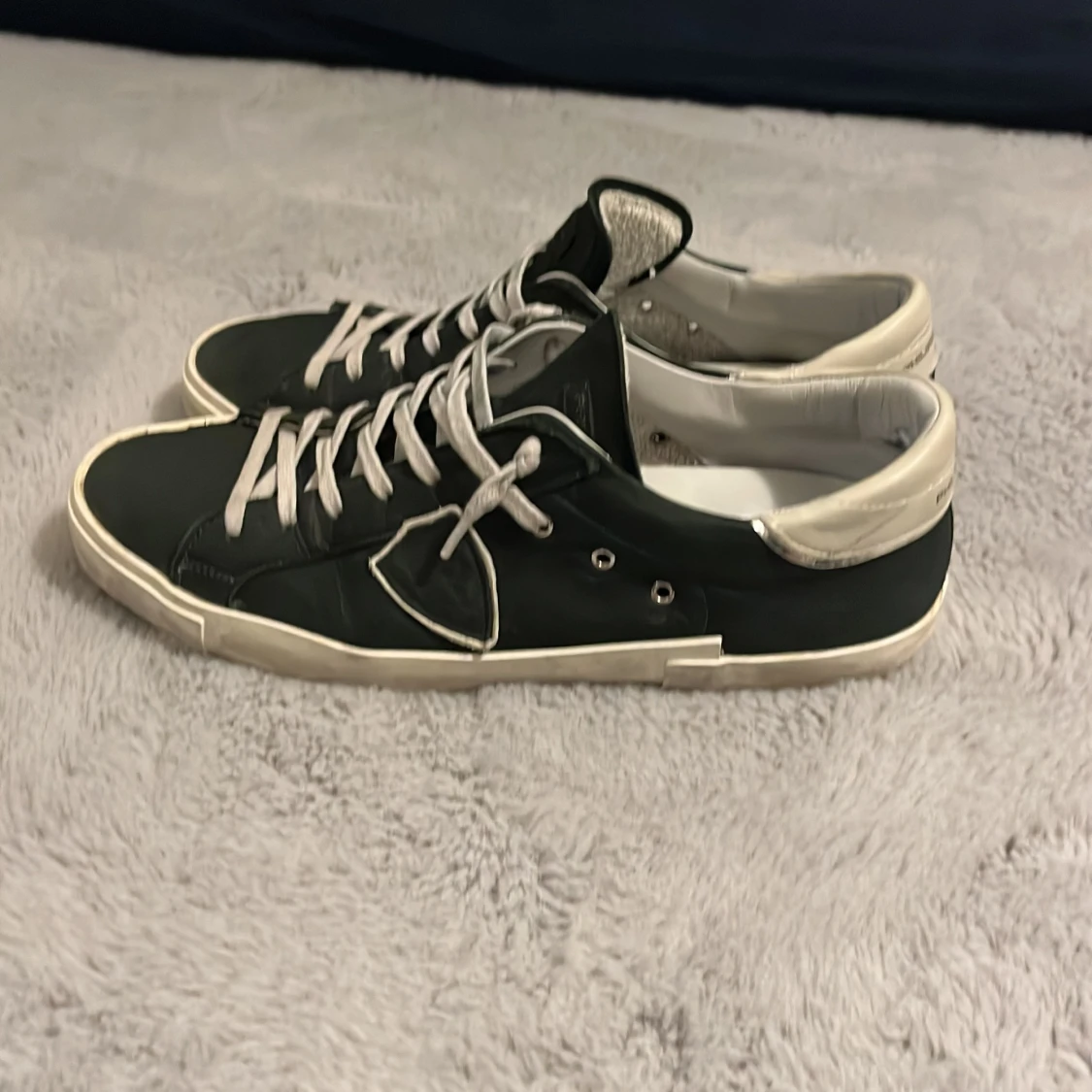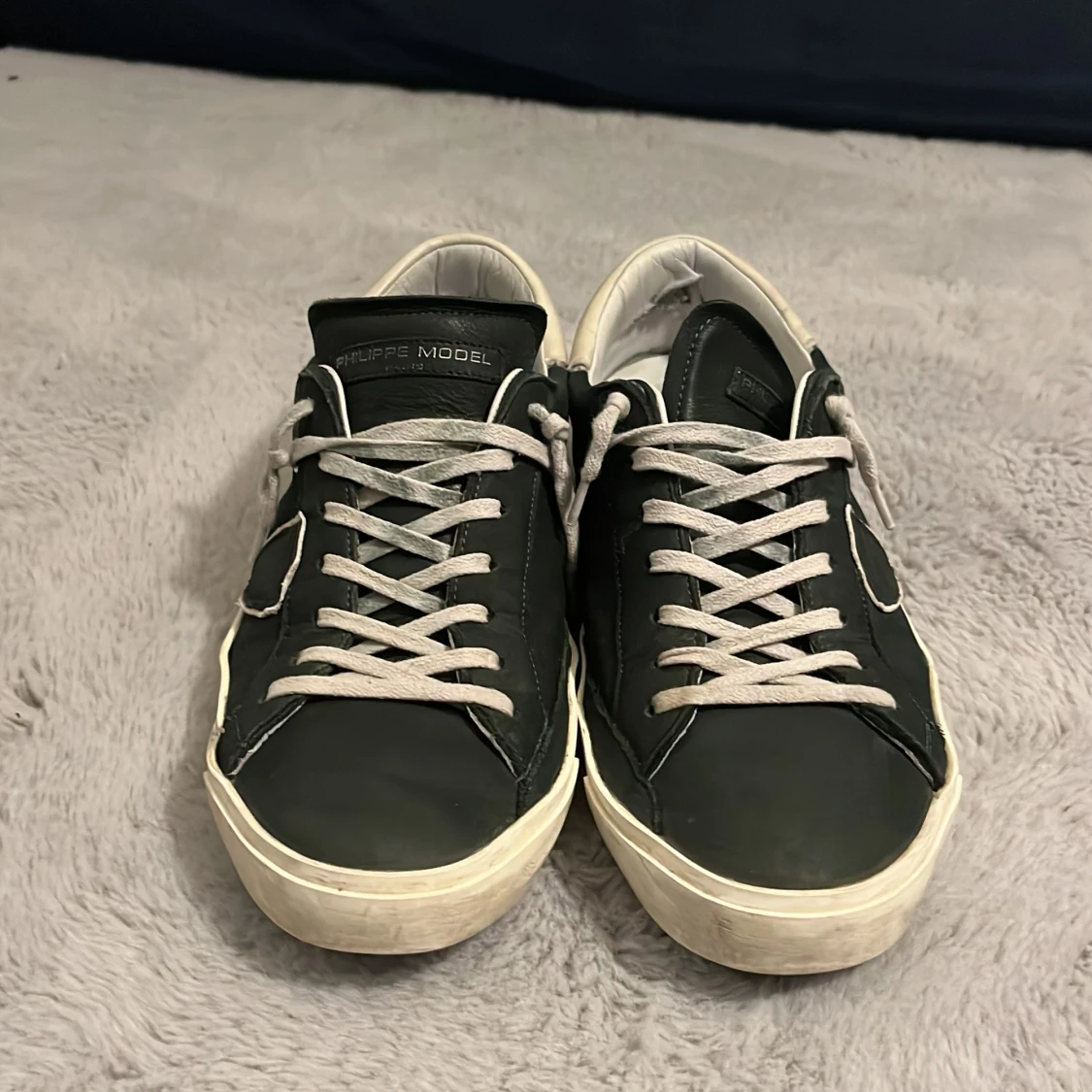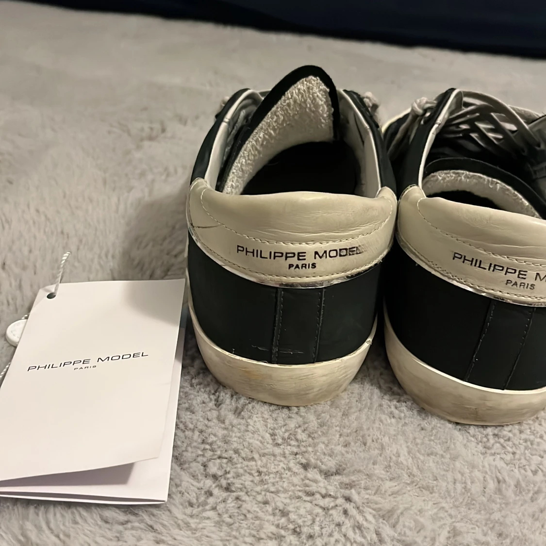 Hej! Säljer nu dessa sjyssta Modelsen i storlek 44. Ett par sköna sneakers i färgen mörkgrön som passar till det mesta både finklätt och mer casual. Finns lite defekter på skorna men även lite på lådan då den blev dåligt behandlad av PostNord men inget särskilt märkvärdigt. Philippe Model certifikat medföljer. Köpta för 3200 mitt pris 1599. Vill du ha fler bilder så är det bara att fråga men även om det är något annat du undrar. Priset går att diskutera, inte fast hugget i en sten