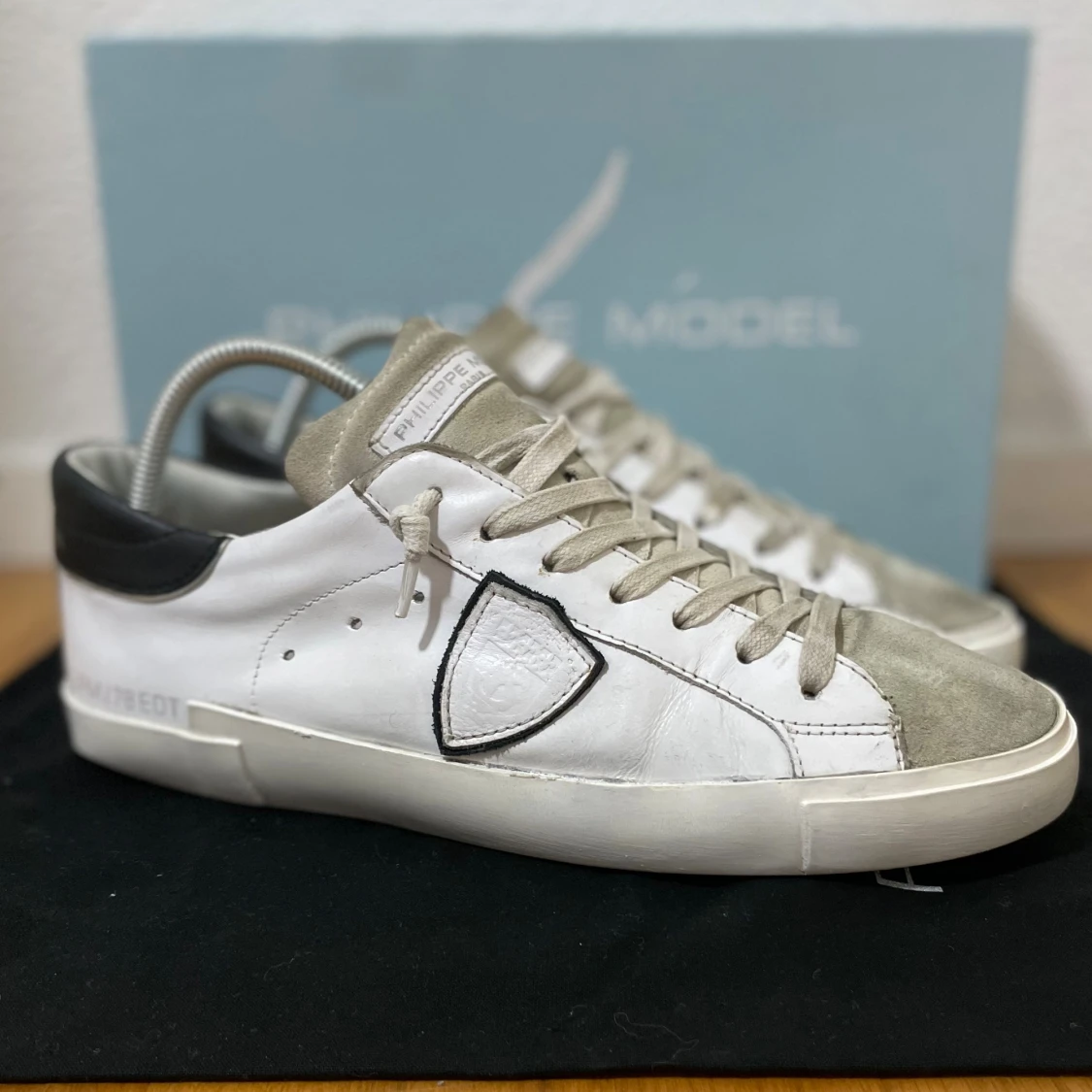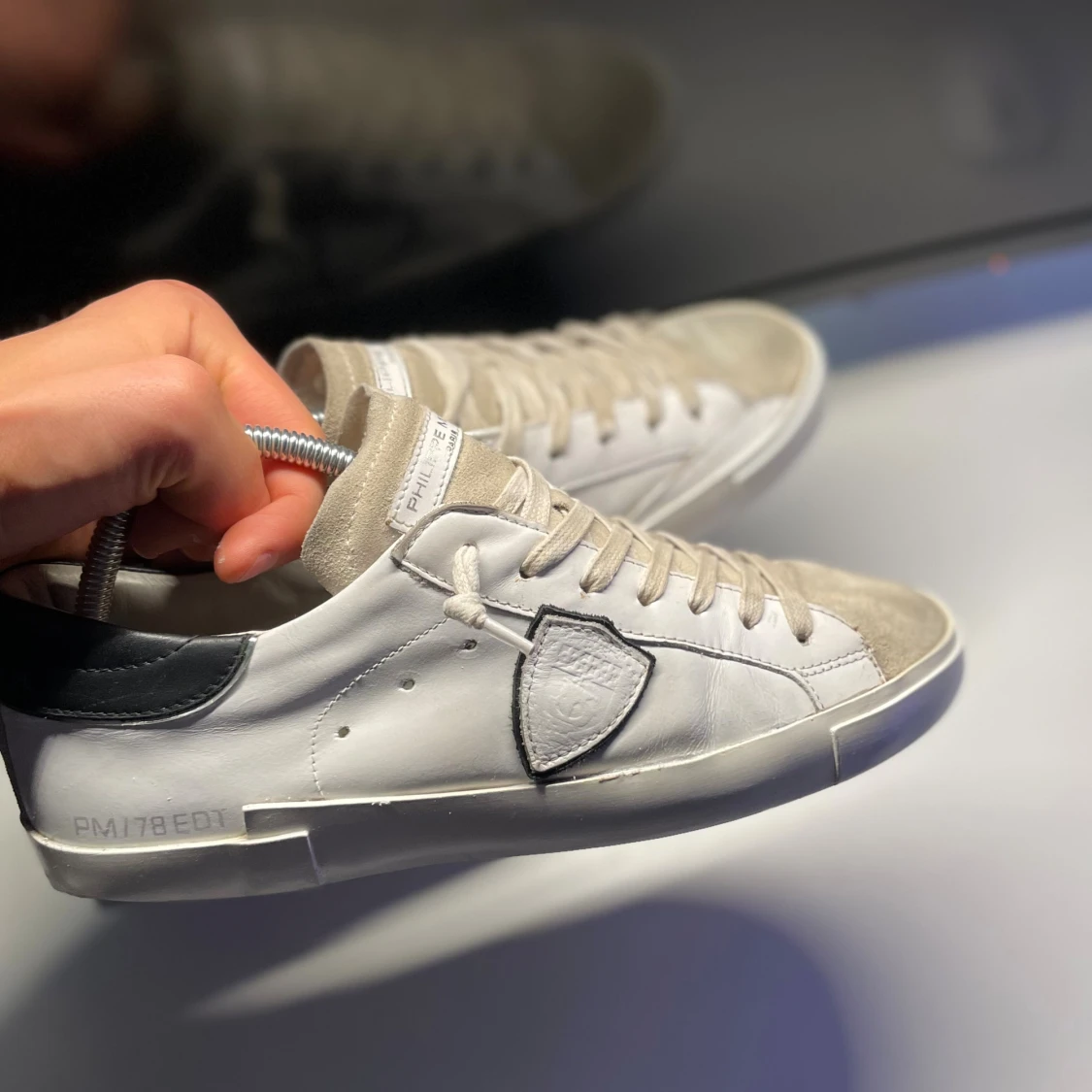 Säljer dessa riktigt snygga Philippe model skinn mocka sneakers i hyvsat bra skick! Skorna har storleken 41. Orginallåda tillkommer vid köp! Nypriset ligger på runt 3500 kr! Hör av er ifall ni har några frågor! 🙌⚜️⭐️