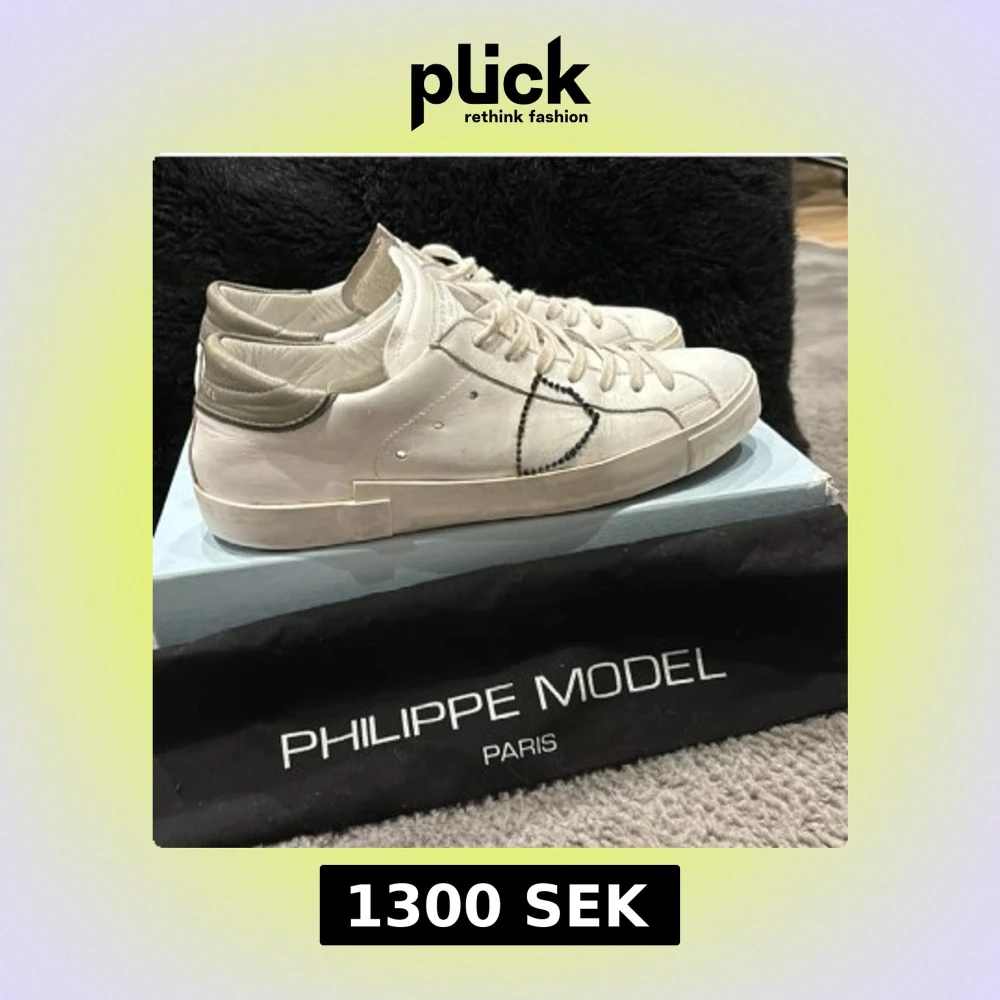 Snygga vita sneakers från philippe model med oliv hröna detaljer. Skorna har en stilren design och är mycket trendiga just nu. Box och dustbag tillkommer även. Hör av er vis funderingar
