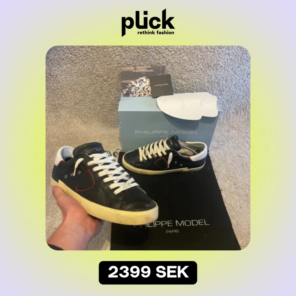 Säljer dessa feta svarta Philippe model skor i storlek 43. De är i skick 9,5/10. Vid minsta lilla fråga är de ba att hojta!