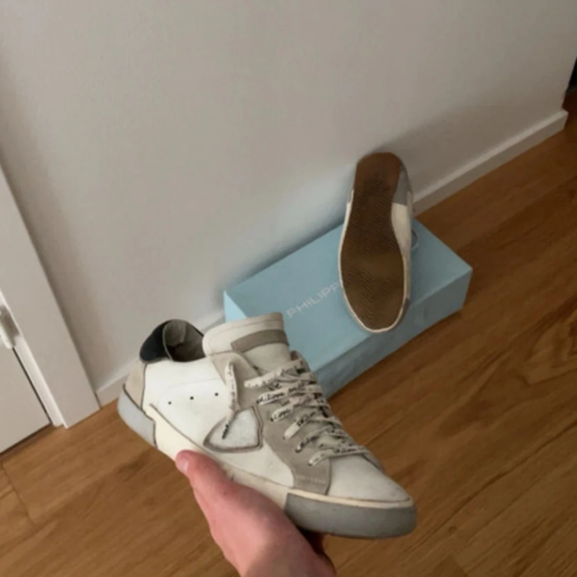 Säljer ett par riktigt snygga Philippe model skor. Dessa är väldigt välkända och många som vill ha. De har lite defekter. Lite på sulan och på en av skosnörena som är lite sönder men är fixat! Annars är de inga besvär! Storleken är 43 och priset jag kommer sälja dessa för är 1050 men de är inte satt i sten