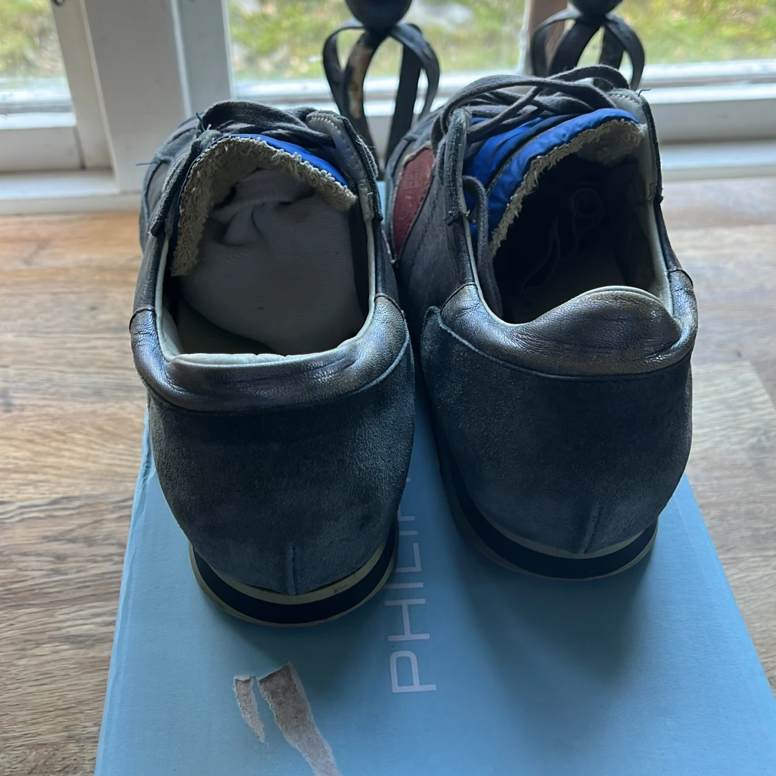👟Här är ett par snygga trainers/sneakers som är i storleken 41 Eu och är mix färgade men 2 olika grå och röd sköld✅Nypris:- 3500kr💸. Mitt pris:- 499kr💸 skriv för mer info 🙌🙌