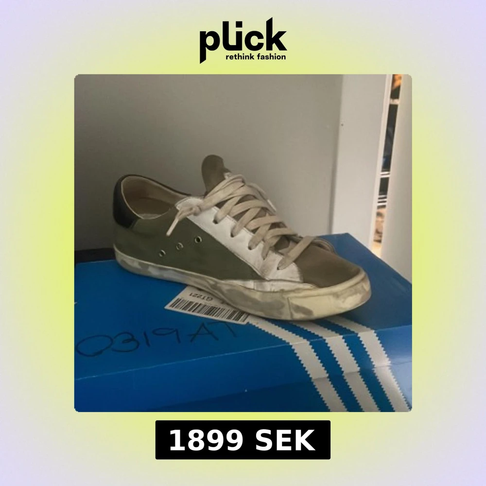 Snygga Philippe Model sneakers i olivgrönt och vitt med svarta detaljer på hälen. Skorna har klassisk snörning, vit sula och rund tå. Materialmix av skinn och syntet ger en exklusiv känsla. Perfekta för dig som gillar streetstyle med en twist. Storlek är 40 och man får med två kort också.