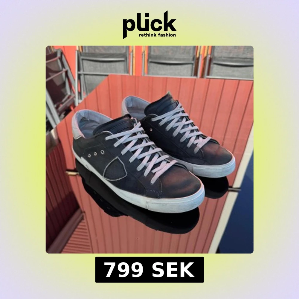 Snygga svarta Philippe Model sneakers i skinn med vita detaljer och snörning, perfekt till nu när hösten smyger på. Skorna är storlek 43 och använda men väl omhändertagna. Original låda följer med om jag hittar den. Tveka inte att ställa frågor 💯