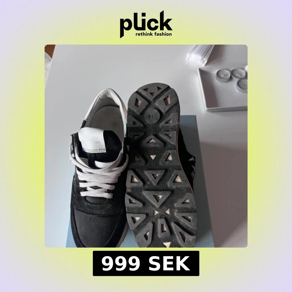 Svarta sneakers från Philippe Model med vita detaljer och snörning. Ovandel i mocka och textil, vit logga på sidan och vit hälkappa. Det är storlek 39 IT passar 40. Sulan är vit med svarta inslag undertill och har ett sportigt, trendigt utseende. Perfekta för en stilren och Grisch look. Perfekta skor till vintern