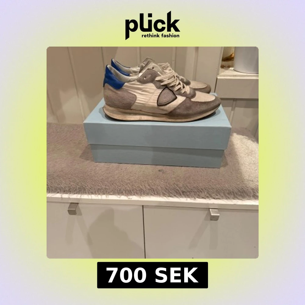 Snygga sneakers från Philippe Model i storlek 41 (Passar även 42). Hyfsat bra skick lite tecken på användning men inget som är så markvärdigt. Lite smutsiga men går att tvätta! Boxen följer med vid köpet!