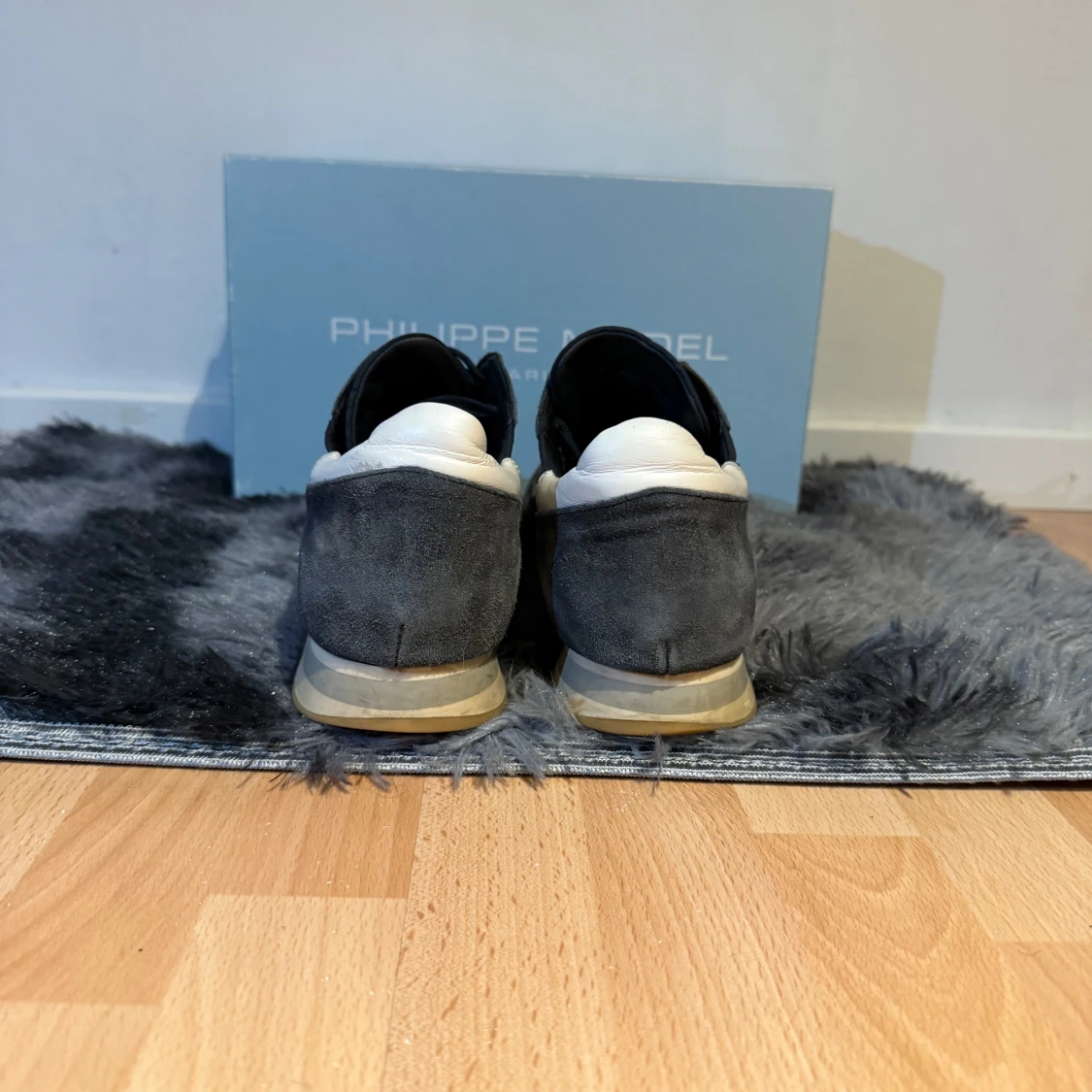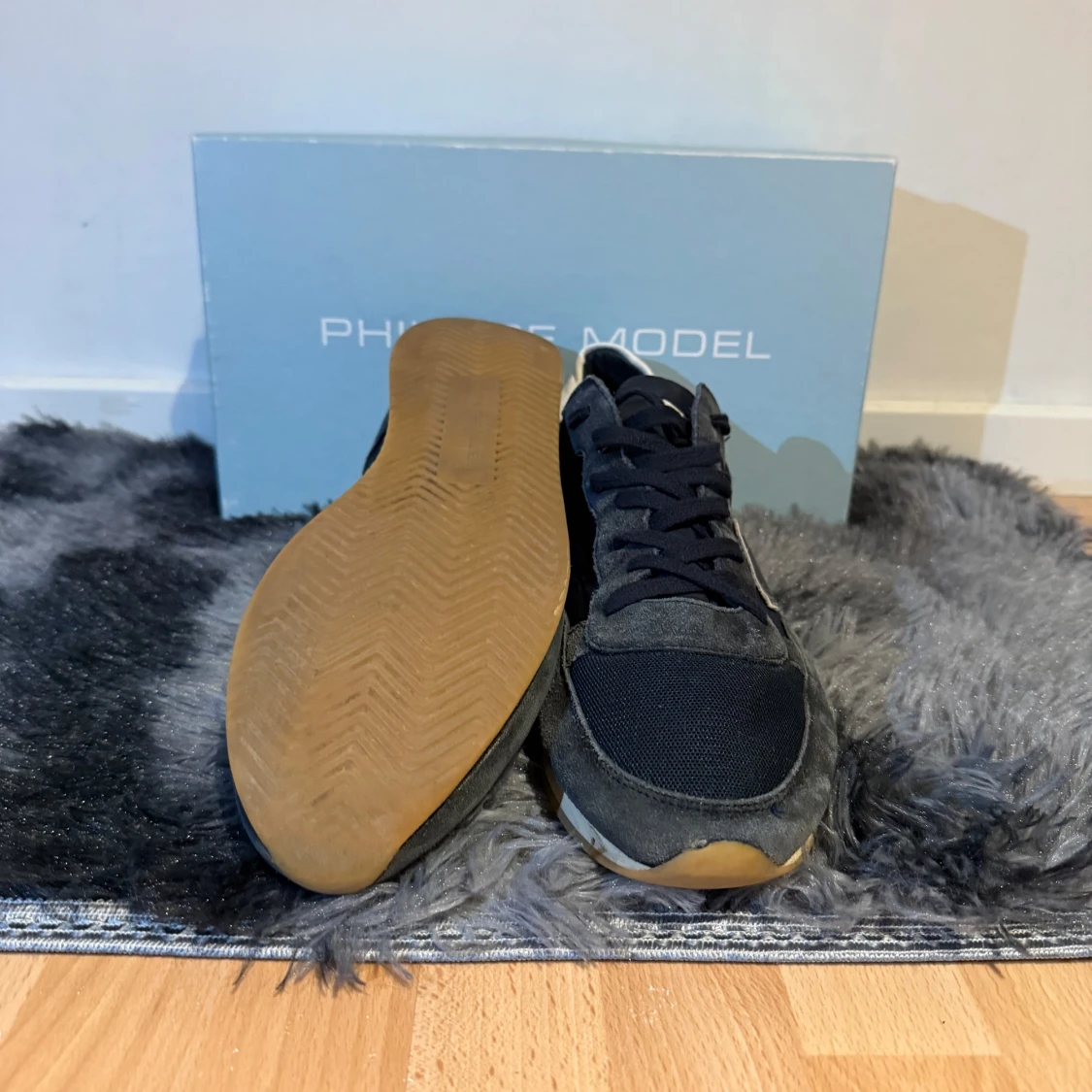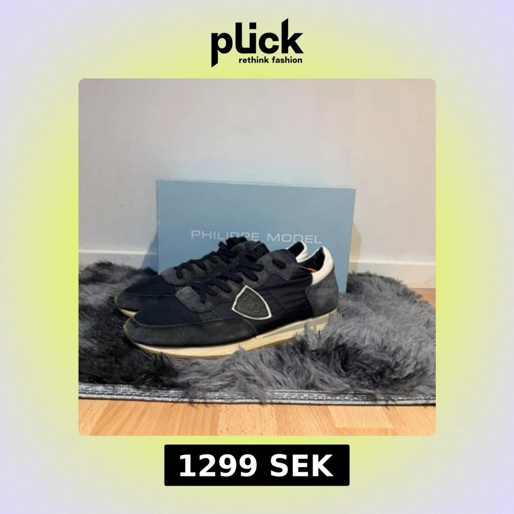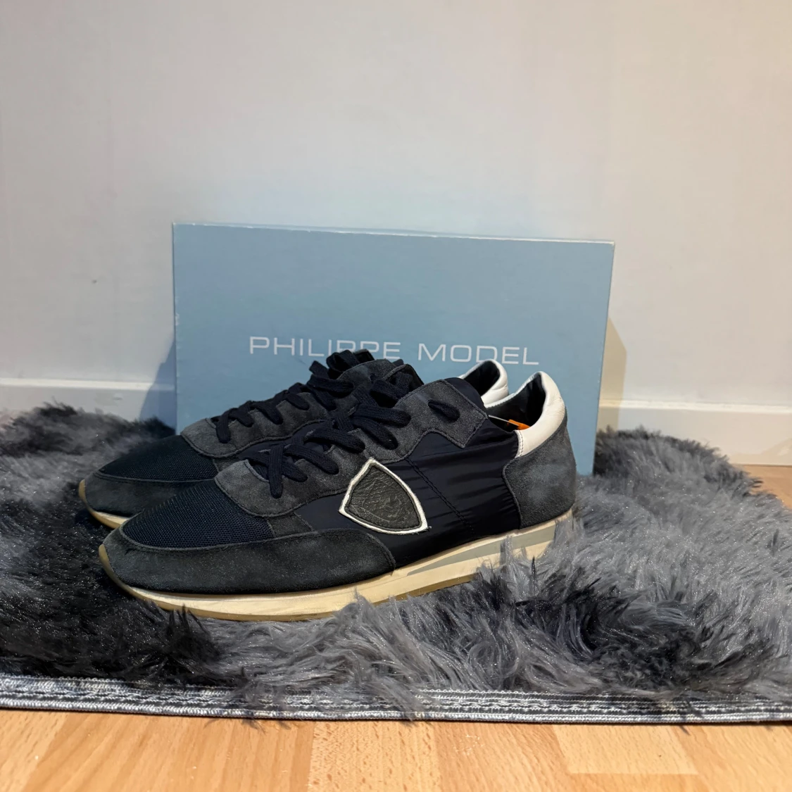 Ett par mörkblåa sneakers från Philippe Model med vita detaljer som passar till de mesta. Skorna är riktigt fräscha nu till sommaren och väldigt sköna! Hör av dig vid fler frågor!