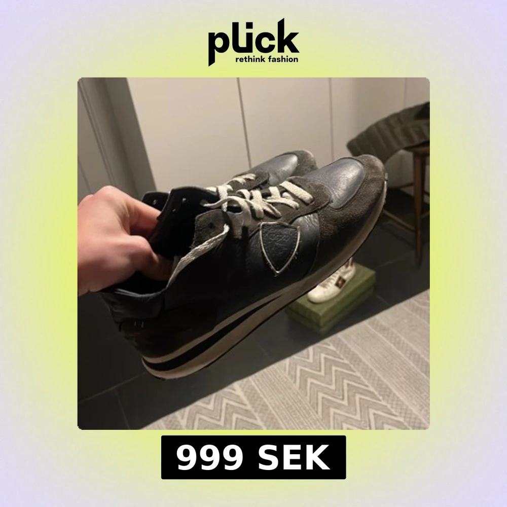 Snygga svarta sneakers med vita snören och detaljer. Skorna har en kombination av skinn och mocka, vilket ger dem en stilren look. Perfekta för en casual stil. Storlek 43 passar mindre