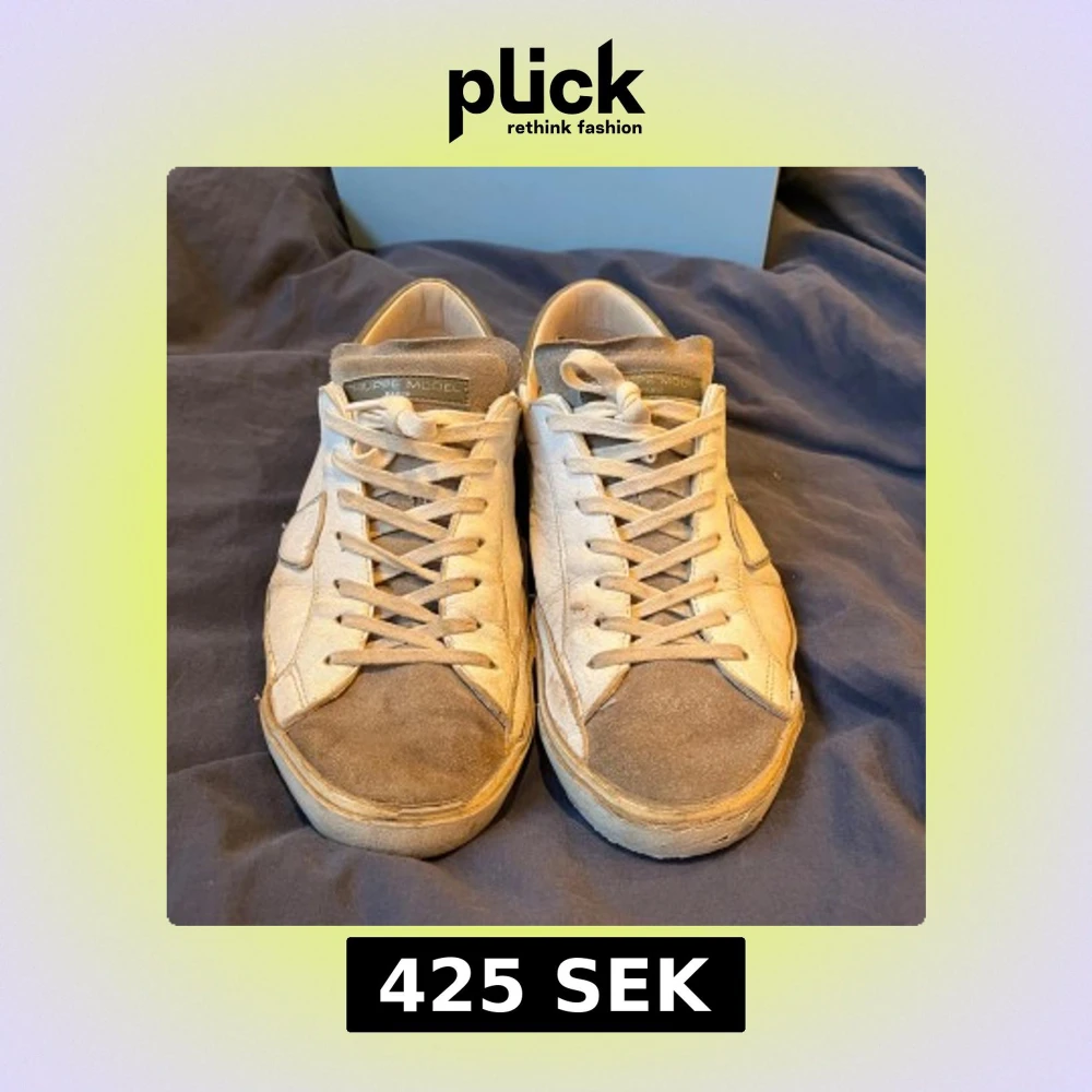 Tjena tjena, jag har ett par Phillipe model här som ni ser. Dom har hängt med ett tag som man ser men är absolut inte dåliga för det, det är egentligen inget fel på dom förutom att dom har använts, man får även med den välkända blåa lådan som är i toppen skick!! Skriv till mig om funderingar angående båda skorna och lådan eller vad ni nu undra.😜👍🤝👍😎🔥
