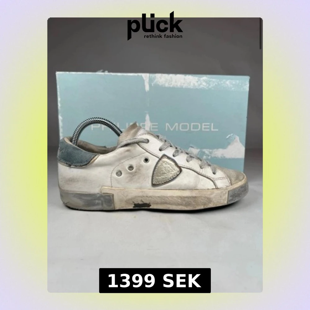 Snygga vita sneakers från Philippe Model med grå detaljer och silverfärgad skinnpatch på sidan. Skorna har klassisk låg profil, rund tå och snörning. Ovandelen är i skinn och mocka, med slitna detaljer för en cool, urban look. Perfekta för dig som gillar streetstyle. Skriv om ni har frågor eller funderingar!😊
