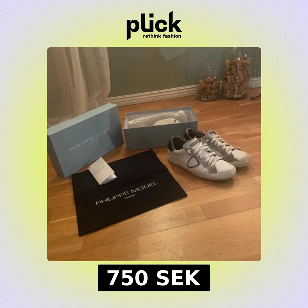 Snygga vita Philippe Model sneakers med grå mockadetaljer och svart häl. Klassisk låg modell med rund tå, snörning och platt sula. Skorna har en ikonisk sköld på sidan och levereras med originalkartong och dustbag. Perfekta för dig som gillar stilrena och trendiga sneakers. Ny pris typ 3500 men jag säljer dom för 750kr