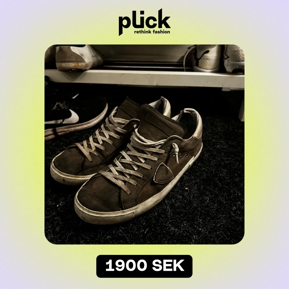 Säljer dessa ursnygga Philippe modell pjuxen då jag sparar till en resa. Skick: 7/10 då dem är lite sletna på insidan. Ej tvättade på bilderna men kan fräschas upp ordentligt, perfekt färg till hösten. Dem är grå/bruna. Kvitto å box medföljes😀