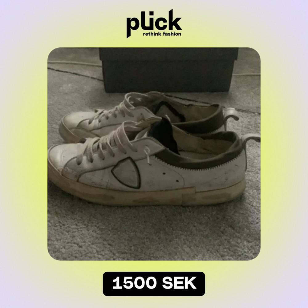 Säljer mina Philippe modell skor då dom är ganska slitna. Skick 4/10. Sköna skor. Sönder på några ställen. Köpta här på Plick.
