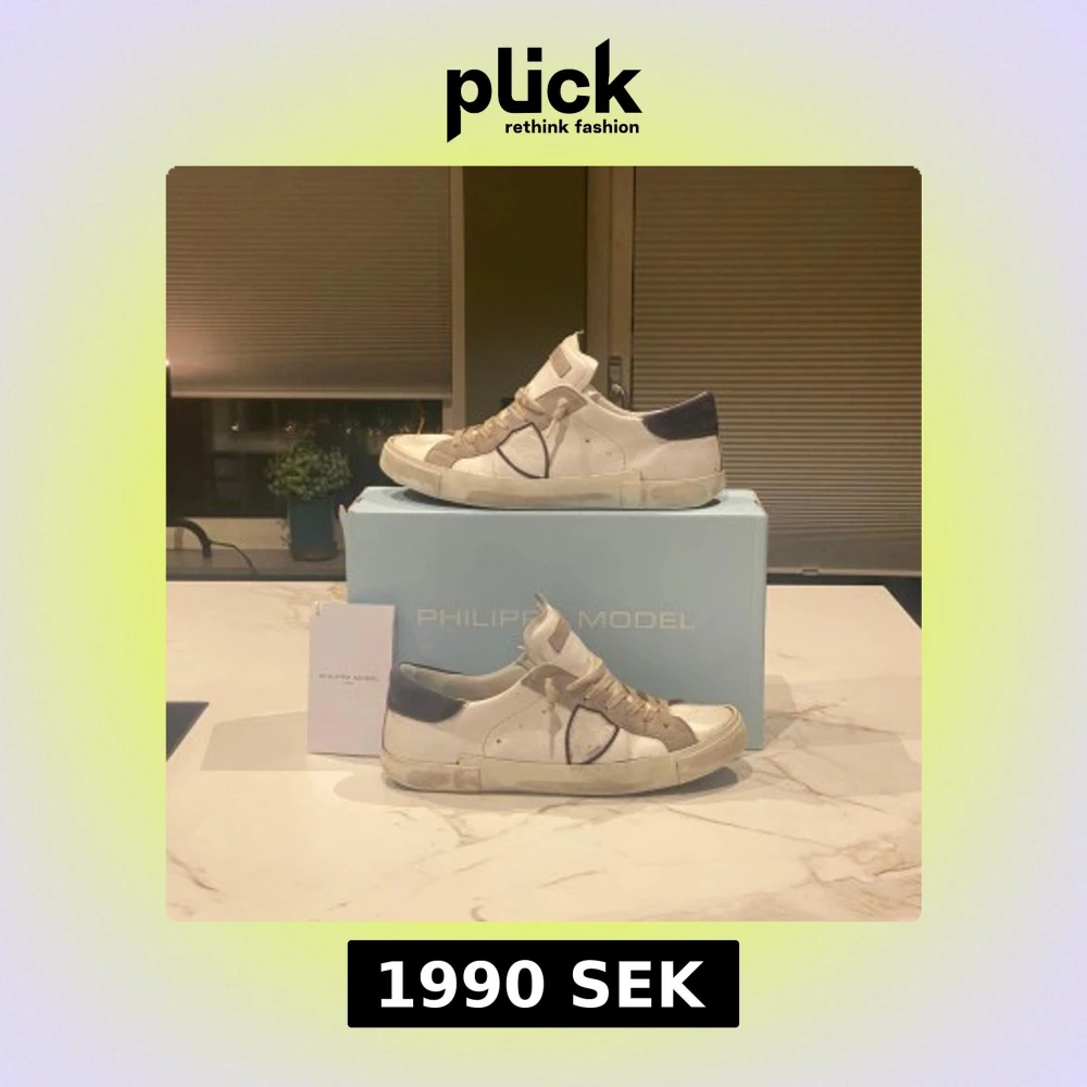 Tja! Säljer nu ett par snygga vita sneakers från Philippe Model med mörkblå detaljer och beige snörning. Skorna har en stilren design med en mix av material som ger en unik look. Perfekta för en trendig vardagsstil men även fest 💙🍾Köpte dem i somras för 3000kr från Cettire. Allt OG medföljer! Hör av er vid frågor eller funderingar! 😁Kan vara intressant med byten!