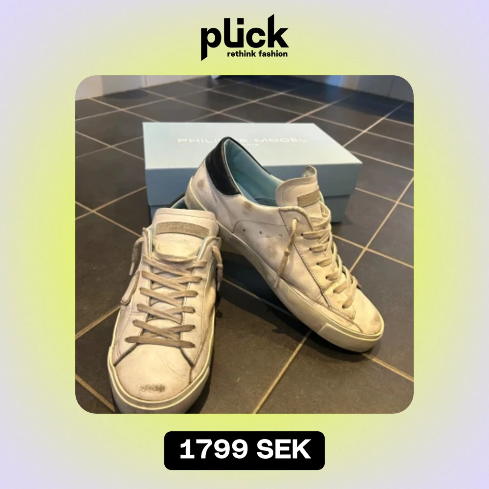 Philippe Model skor använda under sommaren som är i bra skick. Slitningarna ska va på skorna. Pris går att diskutera. Skriv om ni har fler frågor eller funderingar.